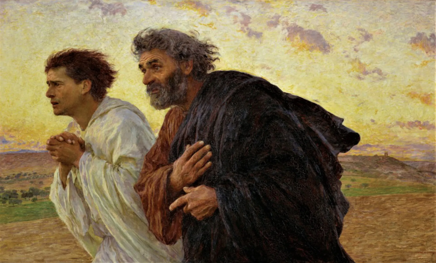 (The painting is The Disciples Peter and John Running to the Sepulchre on the Morning of the Resurrection by the Swiss artist Eugène Burnand, 1898.)