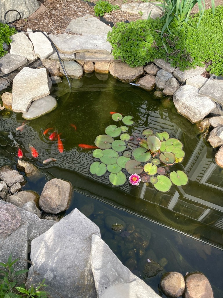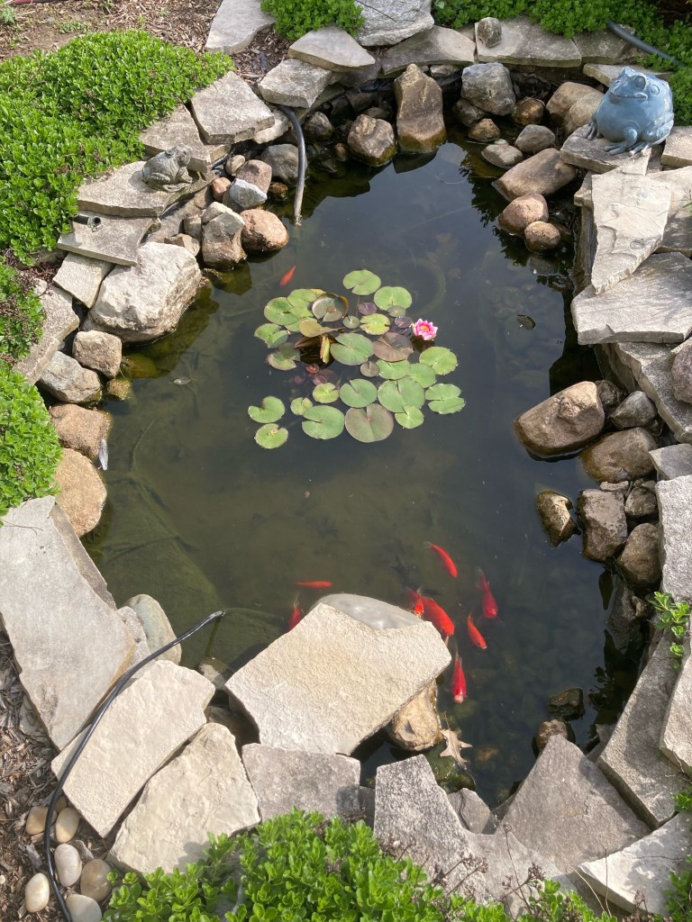I was very happy to see that the water lily is blooming in daughter #2’s fish pond!