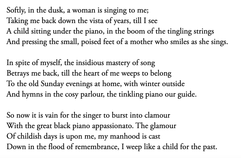 Or you could read a poem, such as “Piano” by D. H. Lawrence: