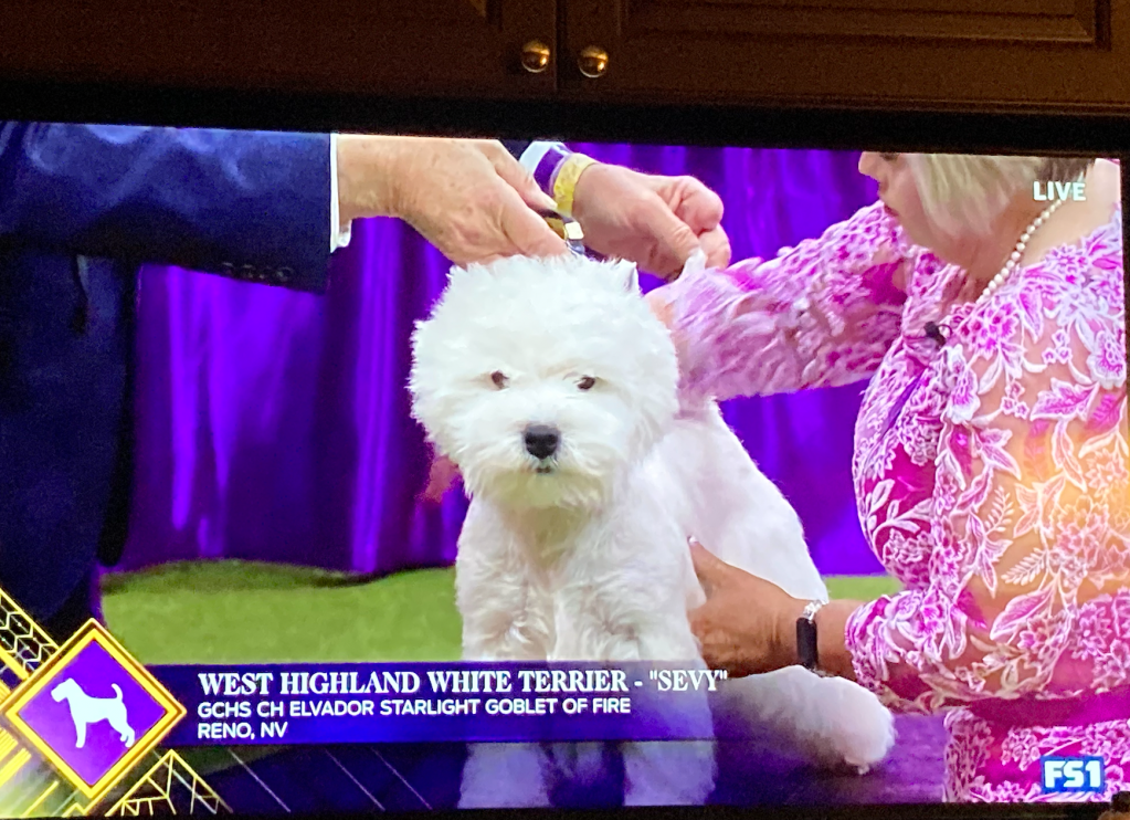 I watched the finale of the Westminster Dog Show last night–4 hours of over-groomed canines. The Westie did not win the terrier group.