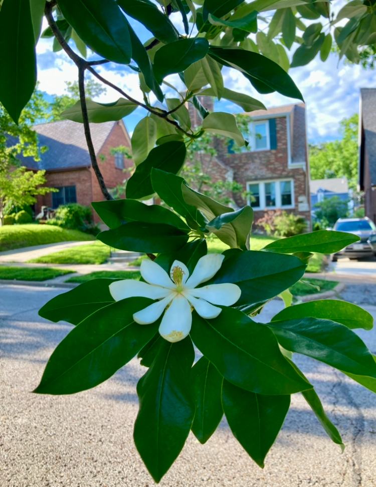 We have had the most ideal weather this week–upper seventies, minimal humidity, sunshine. And the Southern Magnolias in my neighborhood are blooming. Our ear drums maybe bursting from the loud cicadas, but our walks have smelled delightful.