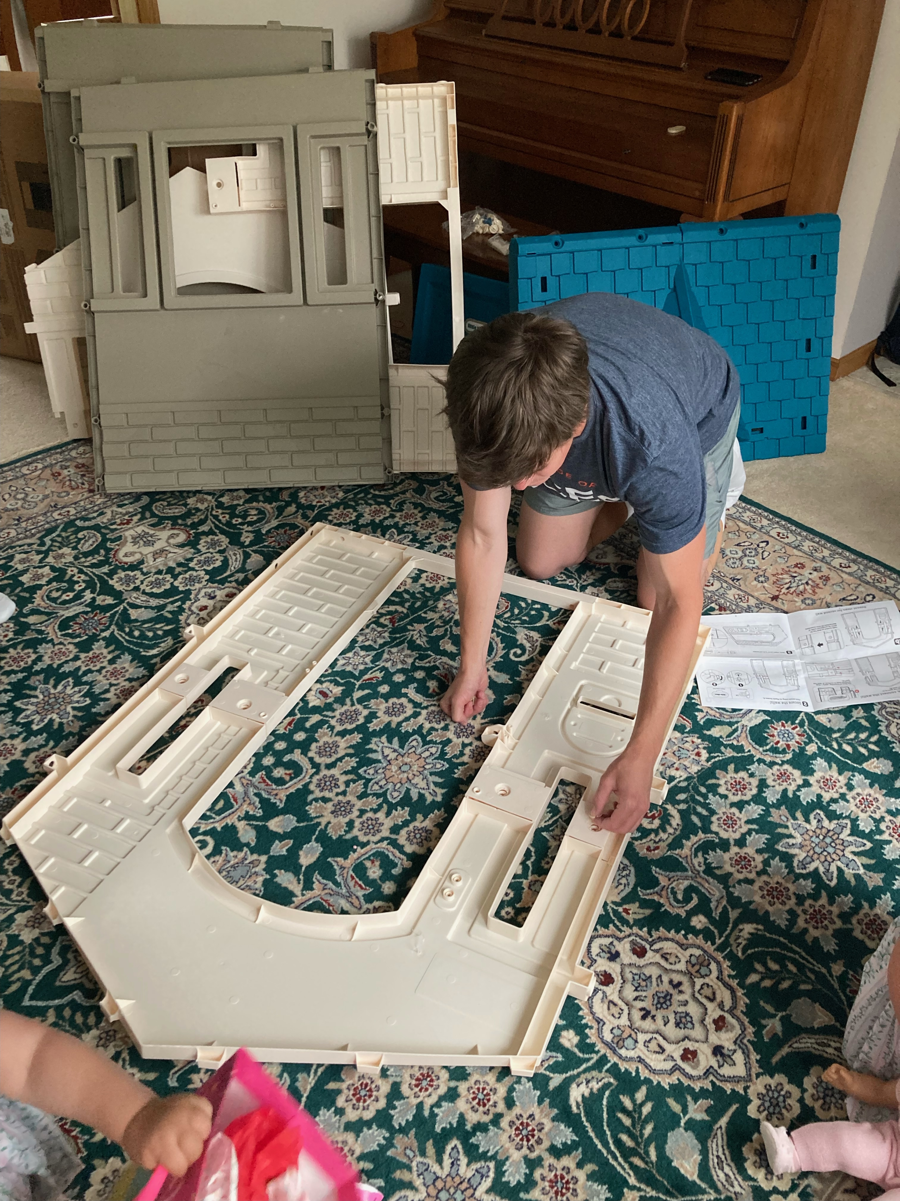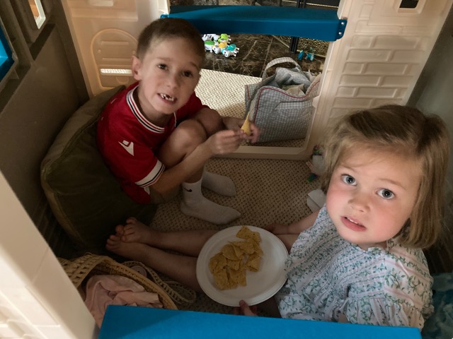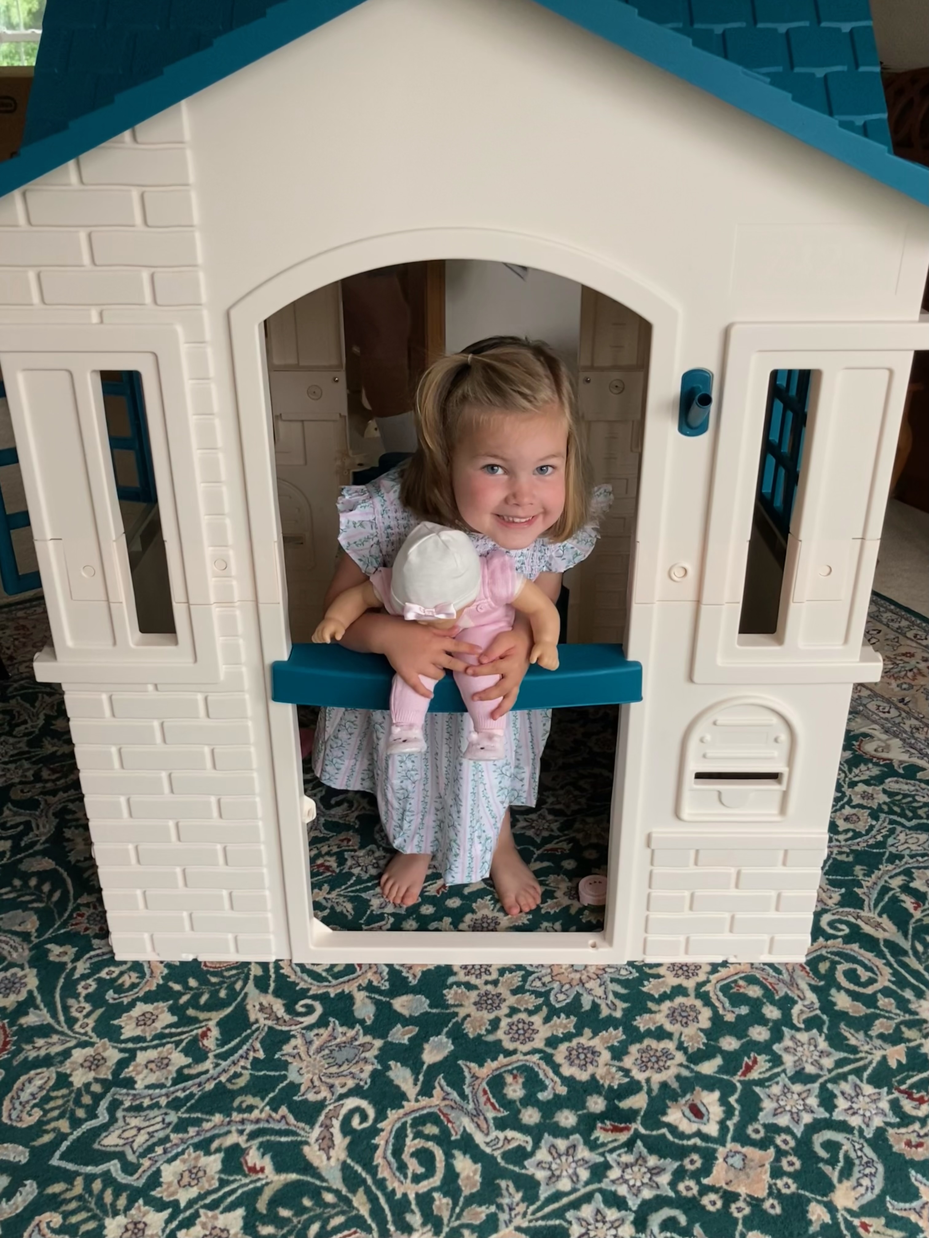 We gave Katie the Little Tikes Cape Cottage Playhouse and she was quite taken with it. It will move outside but the kids were entertained in it for hours on a rainy Saturday afternoon after DN was kind enough to put it together. (And he did it without swearing once!)