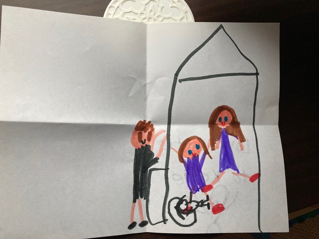 Lottie drew a picture of the girls excluding the bud from the house–girls only! (Some things never change, do they?)