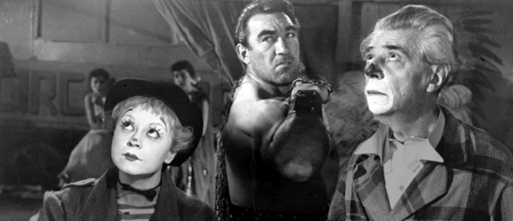 I watched the great Italian movie La Strada (1954) the other day. It is one of my favorites. Federico Fellini’s masterpiece about a traveling strongman who buys a young girl from her poverty-stricken mother in ugly postwar Italy should be depressing, but somehow it is not. Anthony Quinn plays the strongman, who is a brute, a beast without an inner monologue. Giulietta Masina gives a shining performance as Gelsomina, the simple girl who follows him, and Richard Basehart is the Fool who tries to teach her that everyone has a purpose in life. It is a hard lesson to learn under the circumstances. “The Road” is a metaphor for life, of course, and so it is full of sadness and comedy. Here is Martin Scorsese talking about it.