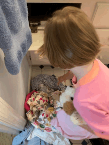 We had quite the deluge of rain all day yesterday which curtailed our plans again. The twins and their parents came over in the morning, but there was no splash pad play. Sigh. At least it cooled off from Monday’s 97-degree high. We played inside.