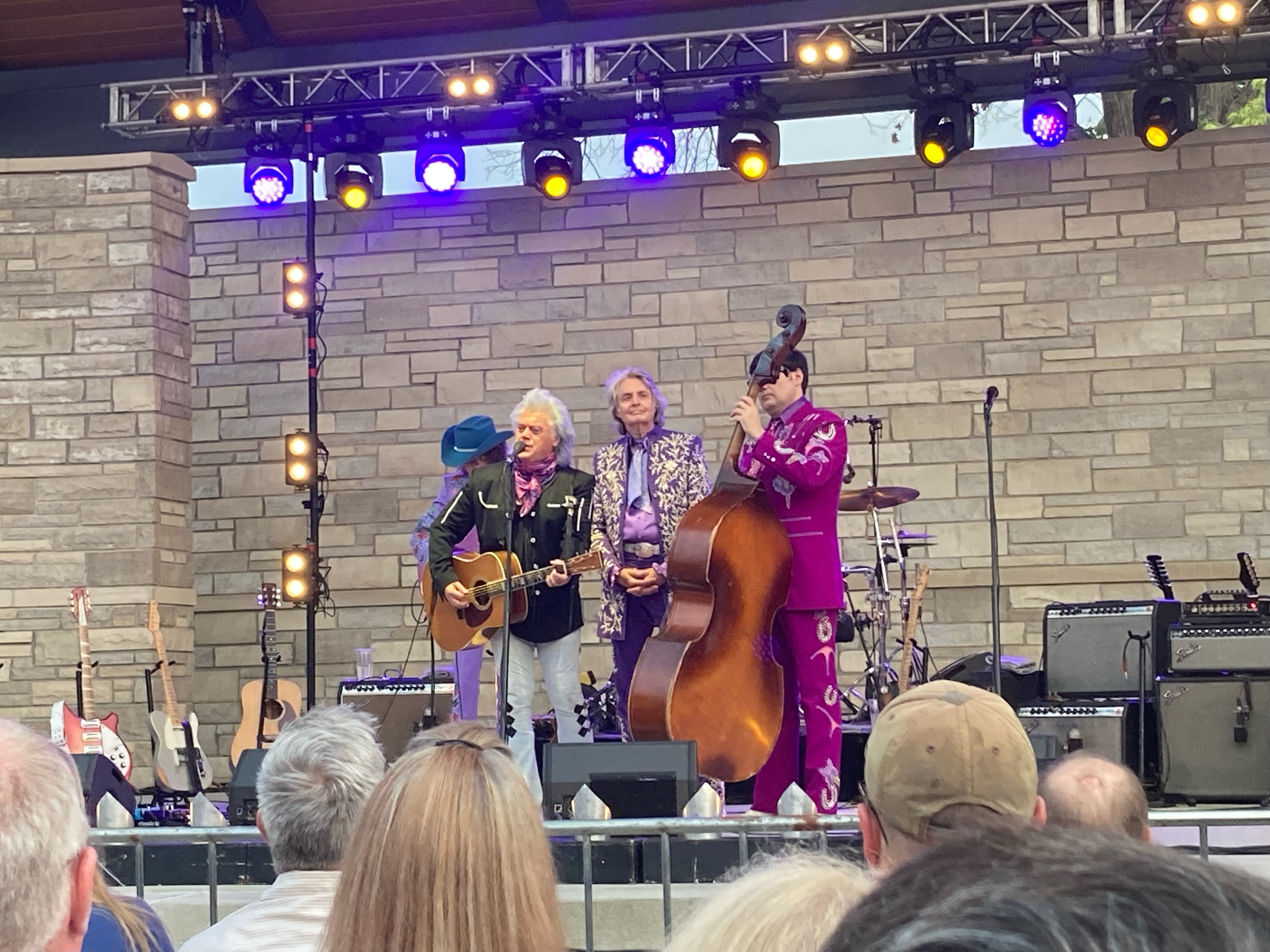 We made it to Jefferson City on Friday and the Marty Stuart concert was superlative! Our seats were front and center and we could really see everything. It wasn’t too hot and there was a nice breeze. Marty, Cousin Kenny, Handsome Harry and Chris Scruggs were rockin’. Before the concert we also managed to have a lovely and relaxing lunch at the Les Bourgeois Vineyard in Rocheport on the Missouri River.