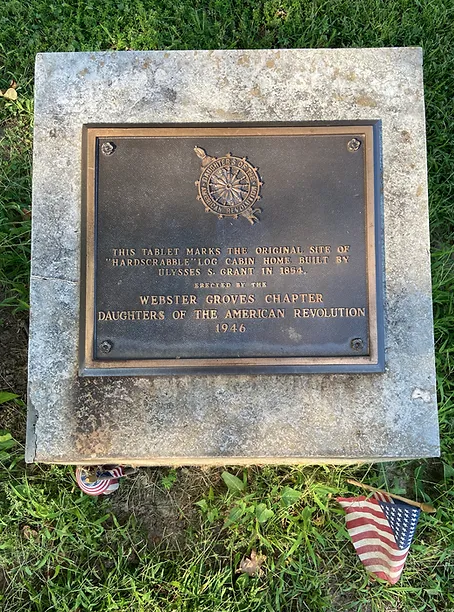 A marker was placed in 1946 by the Webster Groves chapter of the Daughters of the American Revolution to mark the site of Hardscrabble in the current St. Paul Churchyard. (The cabin now resides at Grant’s Farm.)