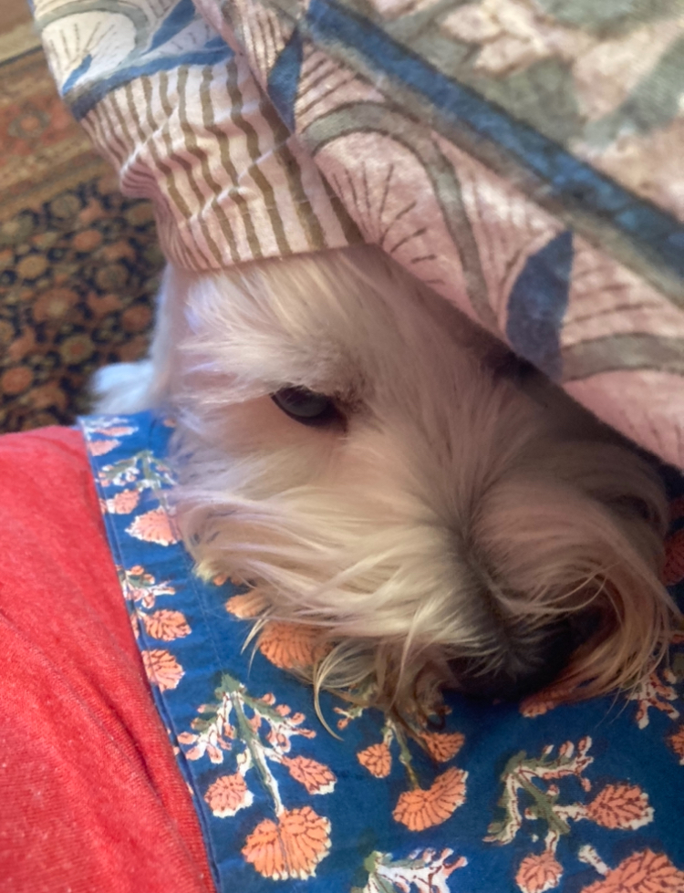Speaking of Mr. Smith, he has recently realized he can push through the gate blocking the entrance to the dining room and kitchen and now likes to sniff around for crumbs while I eat my dinner. He’s getting a bit aggressive.