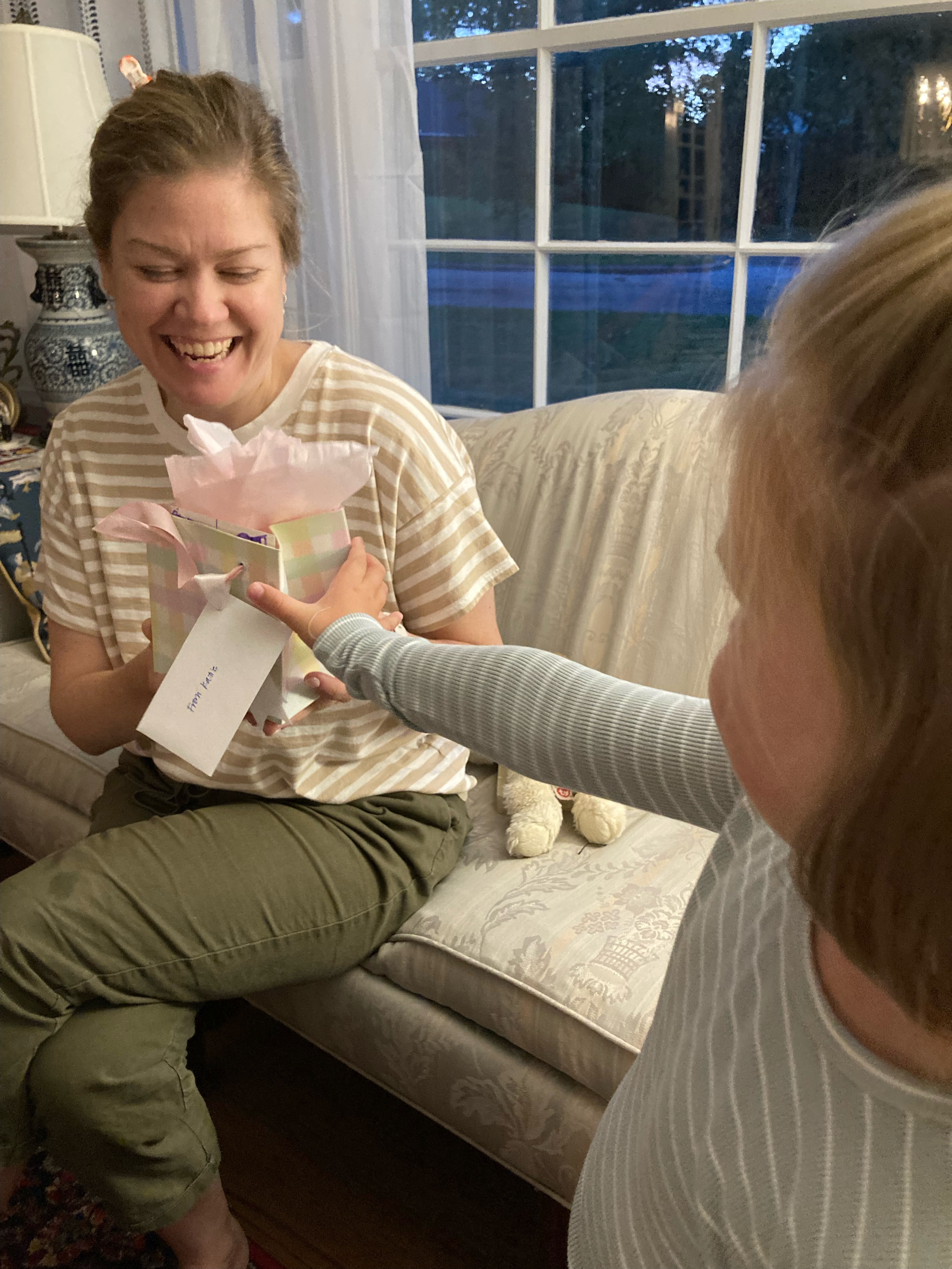 Daughter #2 and DN arrived with the prairie girls around dinner time and we had toasted ravioli and daughter #1 opened some presents.