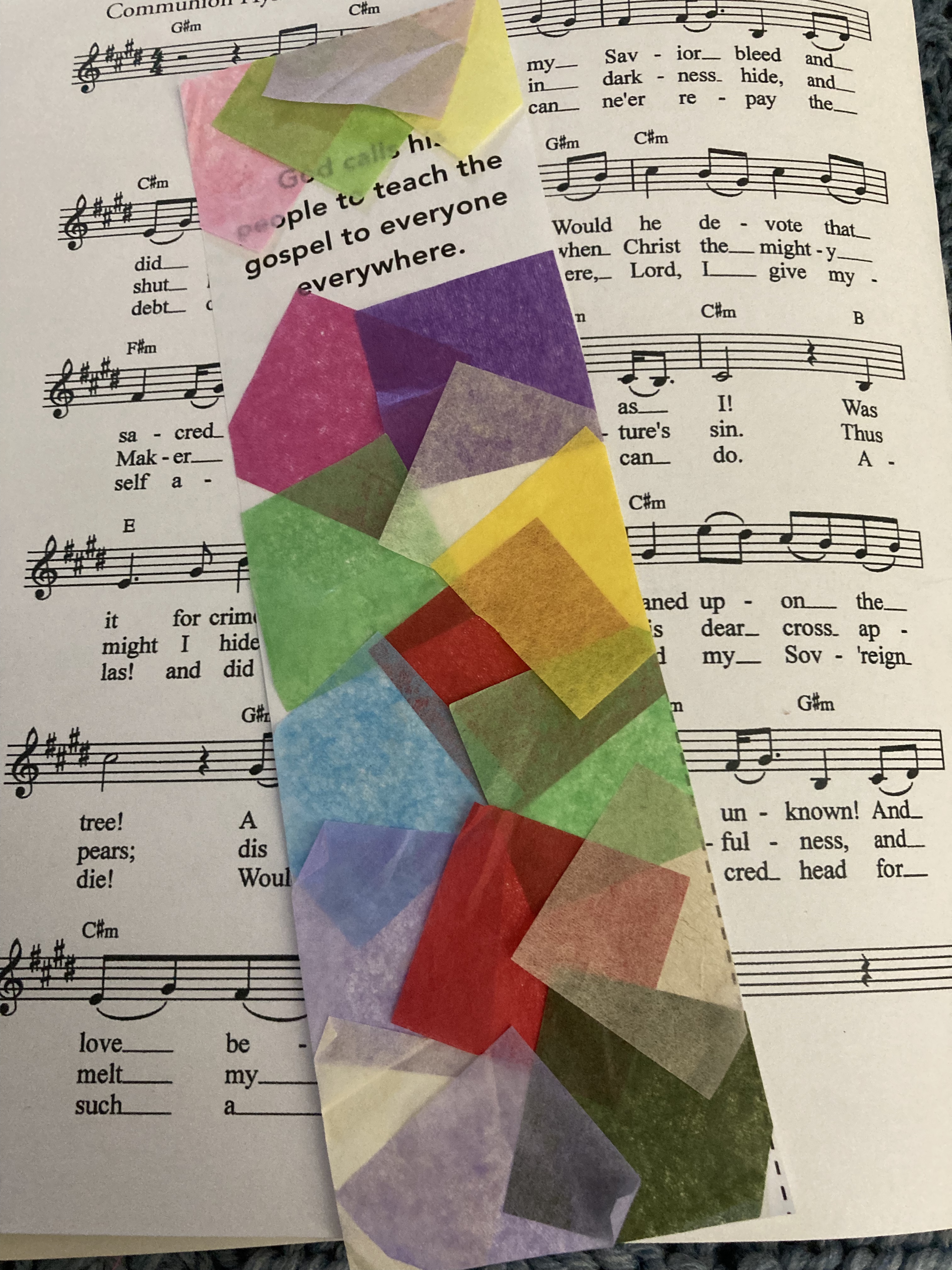 We had prayer requests and talked more about the Ethiopian eunuch and evangelism and we made bookmarks. This was mine: