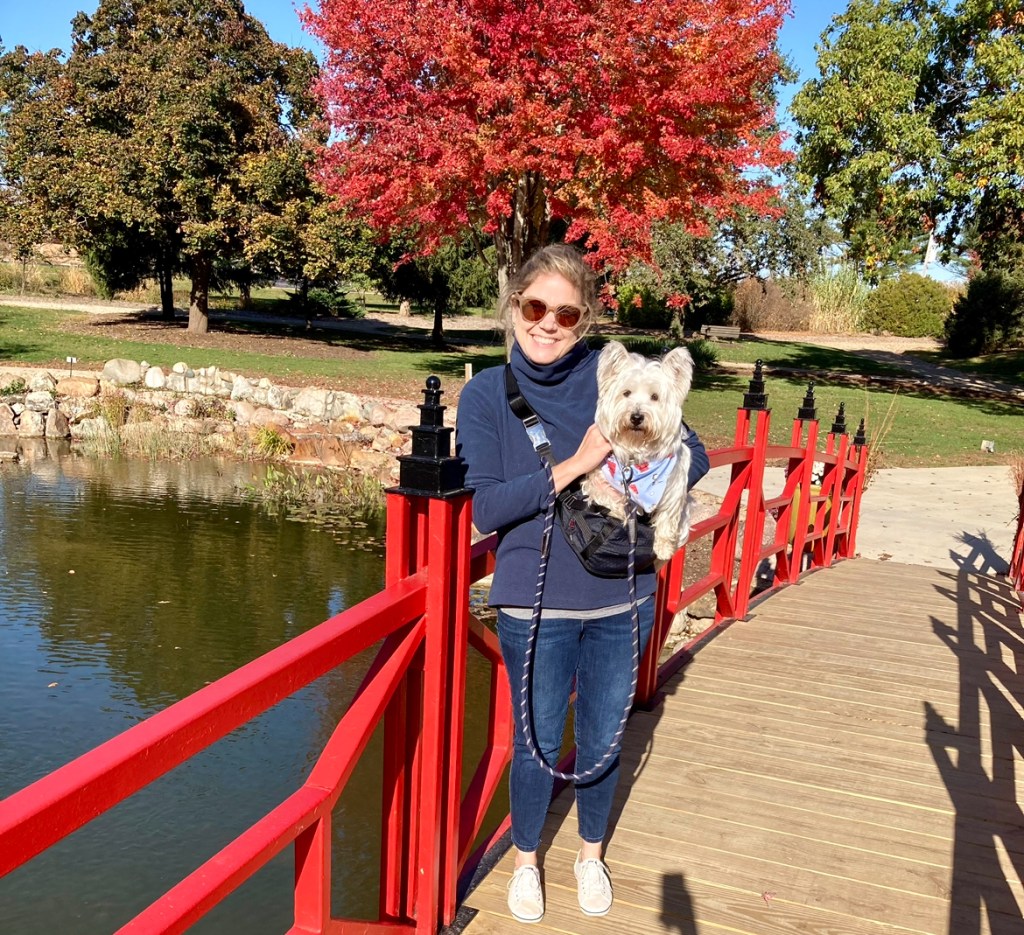 Sometimes, I go to the park and not only do I bring my dog, I pose and make my sister take our picture on a bridge while he’s wearing a bandana.