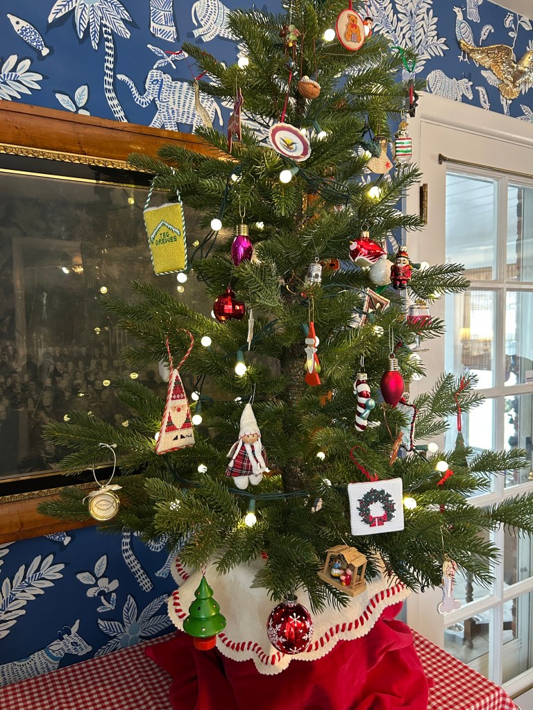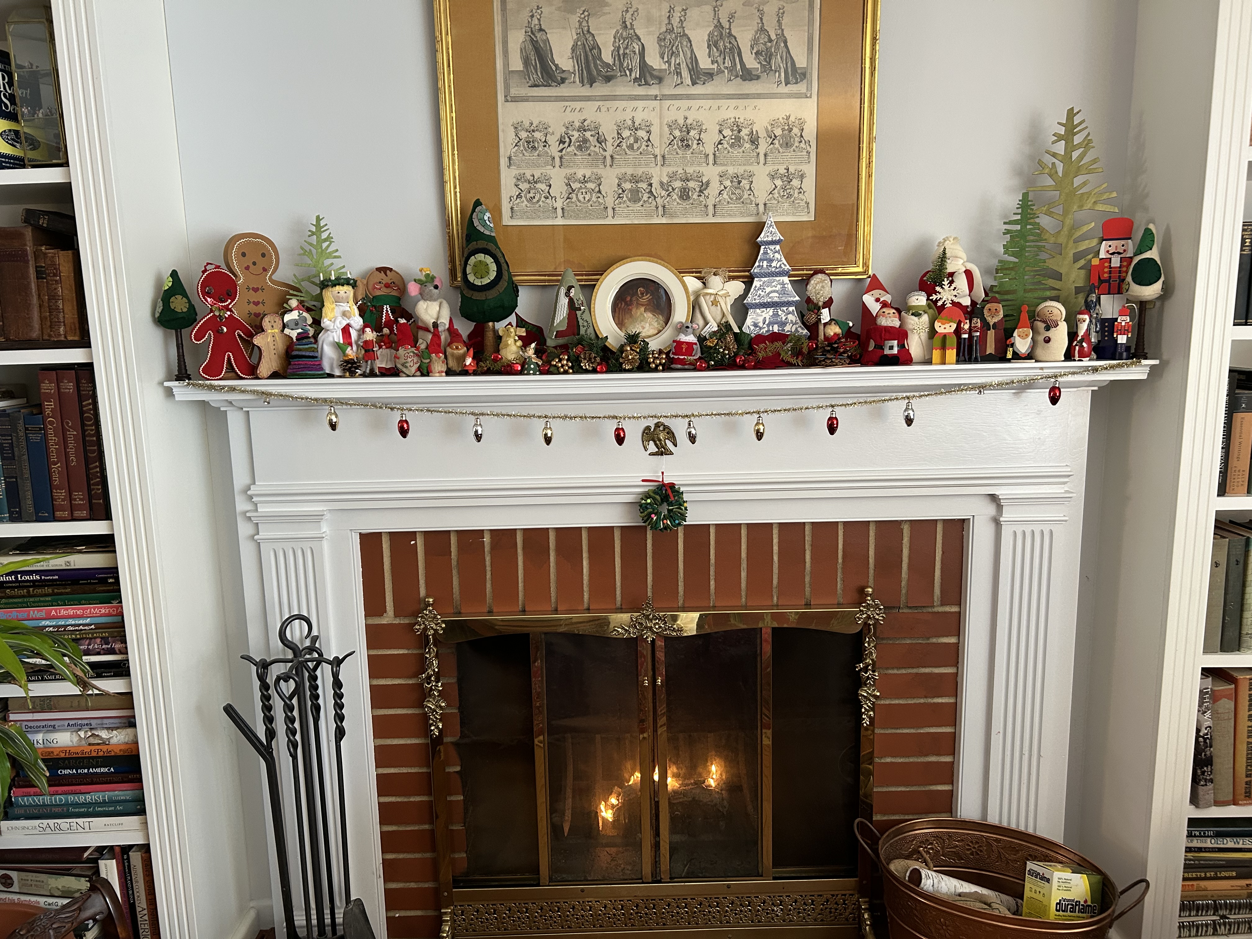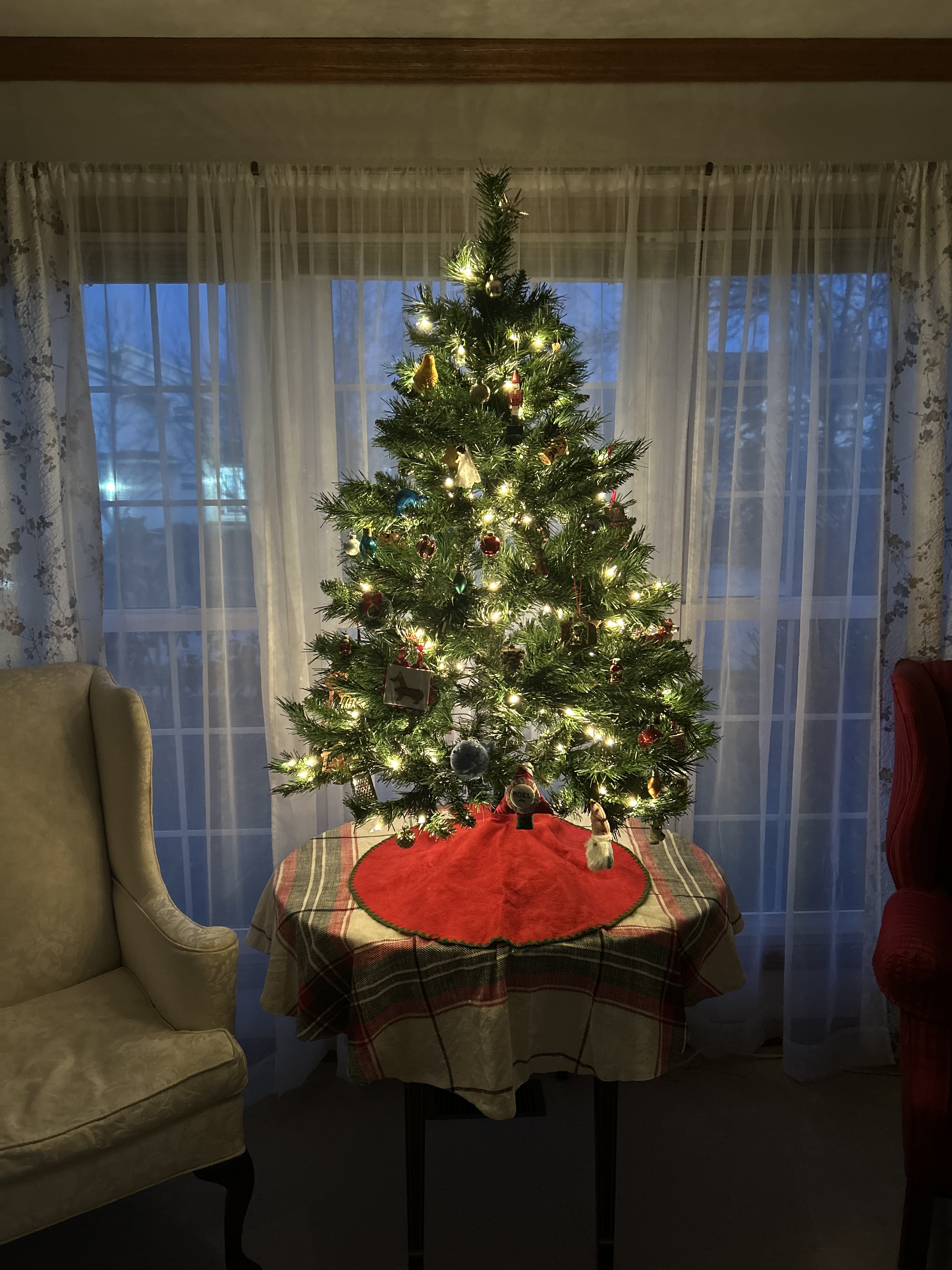 I started the process at my house alone on Saturday. It is a lot of work! First to put away and clean up all the Thanksgiving stuff; then to haul all the Christmas things up from the basement. But I managed to get the little tree put up in the dining room…
