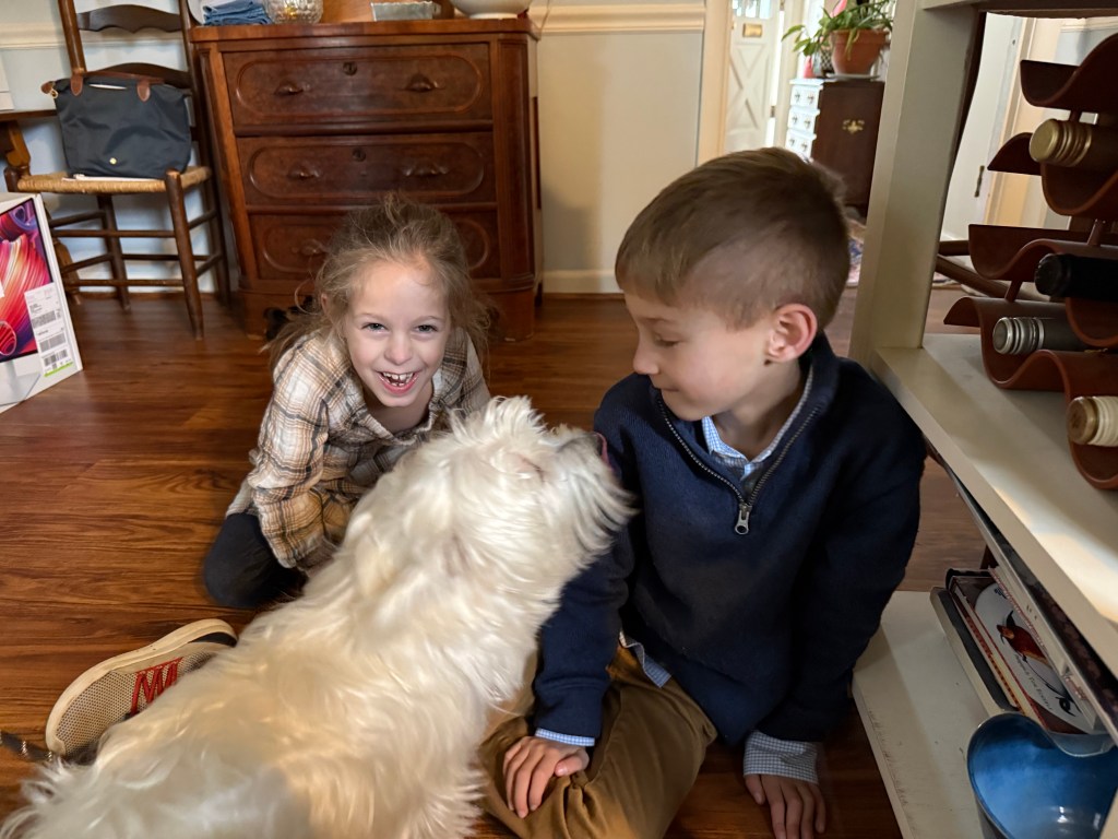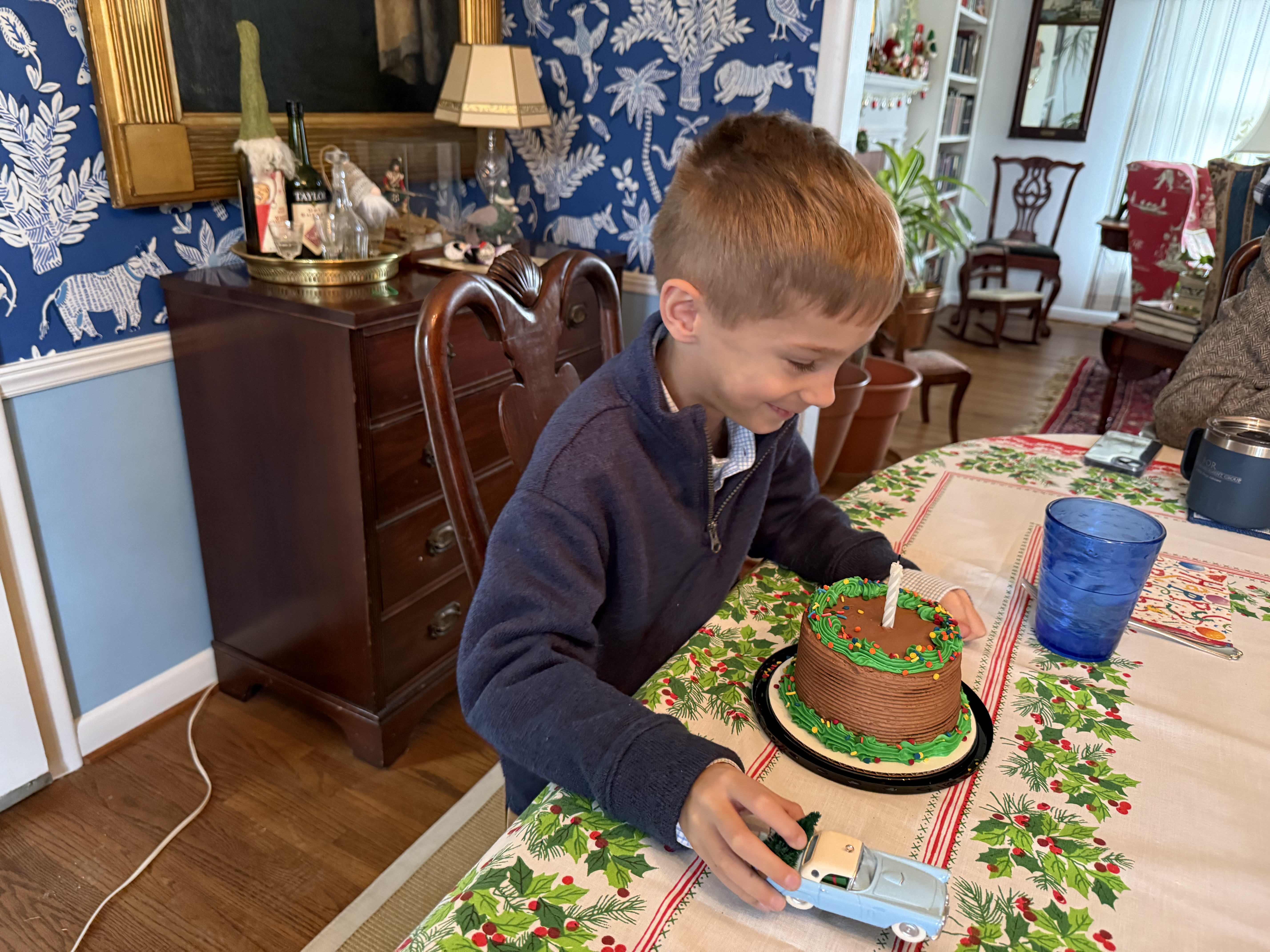 On SUnday I got up and went to church where I sat, as usual, with the boy and the twins. Our adult ed class was excellent–on angels and demons. Afterwards we came home and celebrated the twins 8th birthday with Episcopal/Calvinist soufflé and cake.