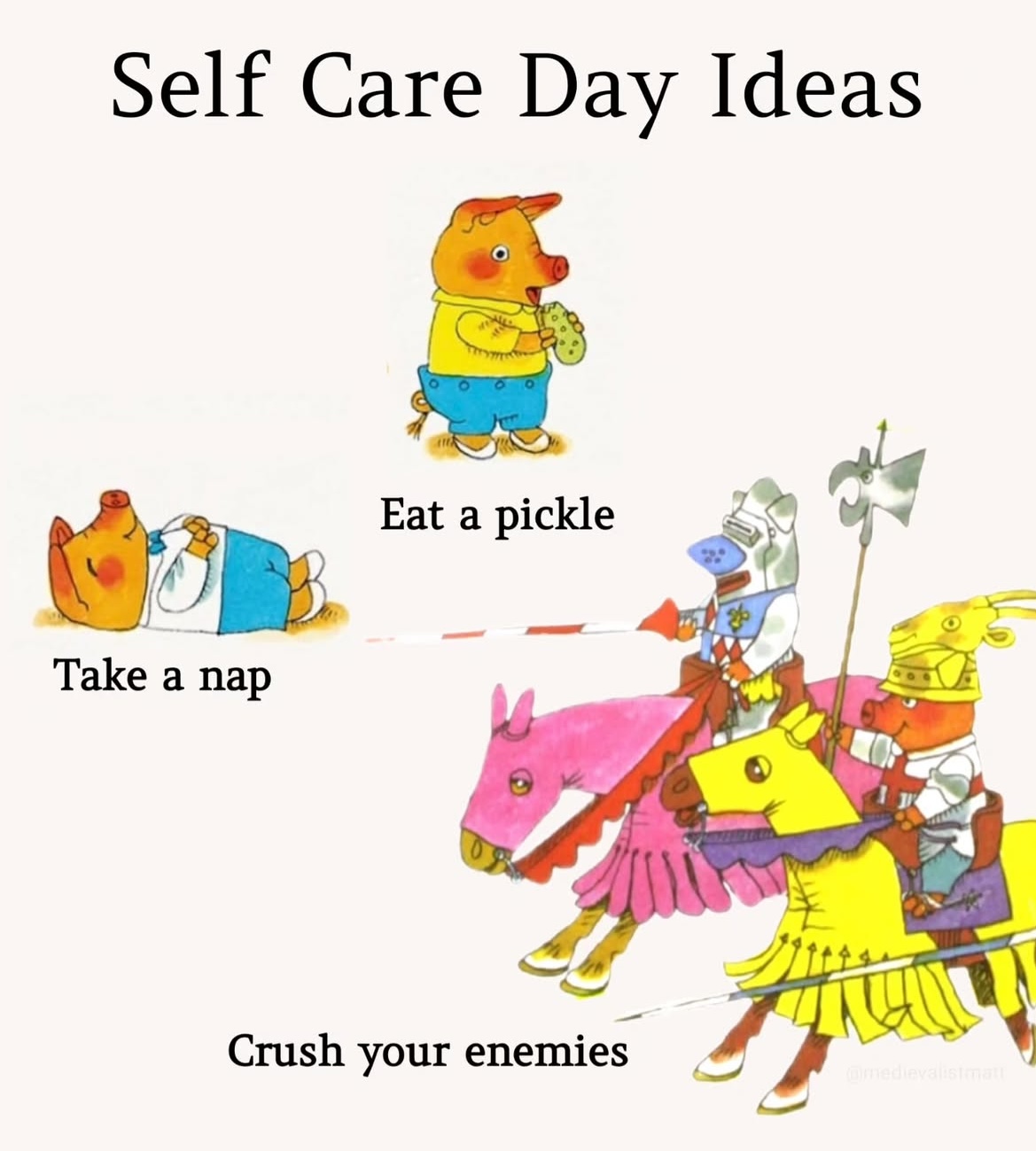 It should come as no surprise that I am looking forward to a holiday break. I am taking two weeks off from work (barring major disaster). Hallelujah! And to include one last Richard Scarry meme before the end of year, I will be channeling BusyTown vibes during this time.