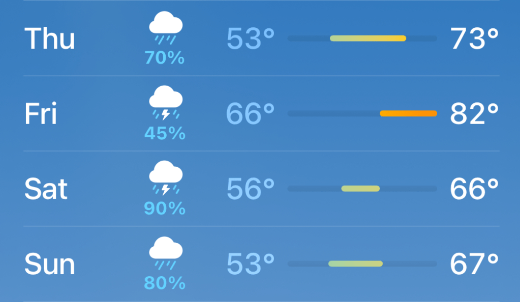 Well, we are in for some bad weather again–of course, the Easter weekend will be rainy and stormy. So much for egg hunts etc. C’est la vie.