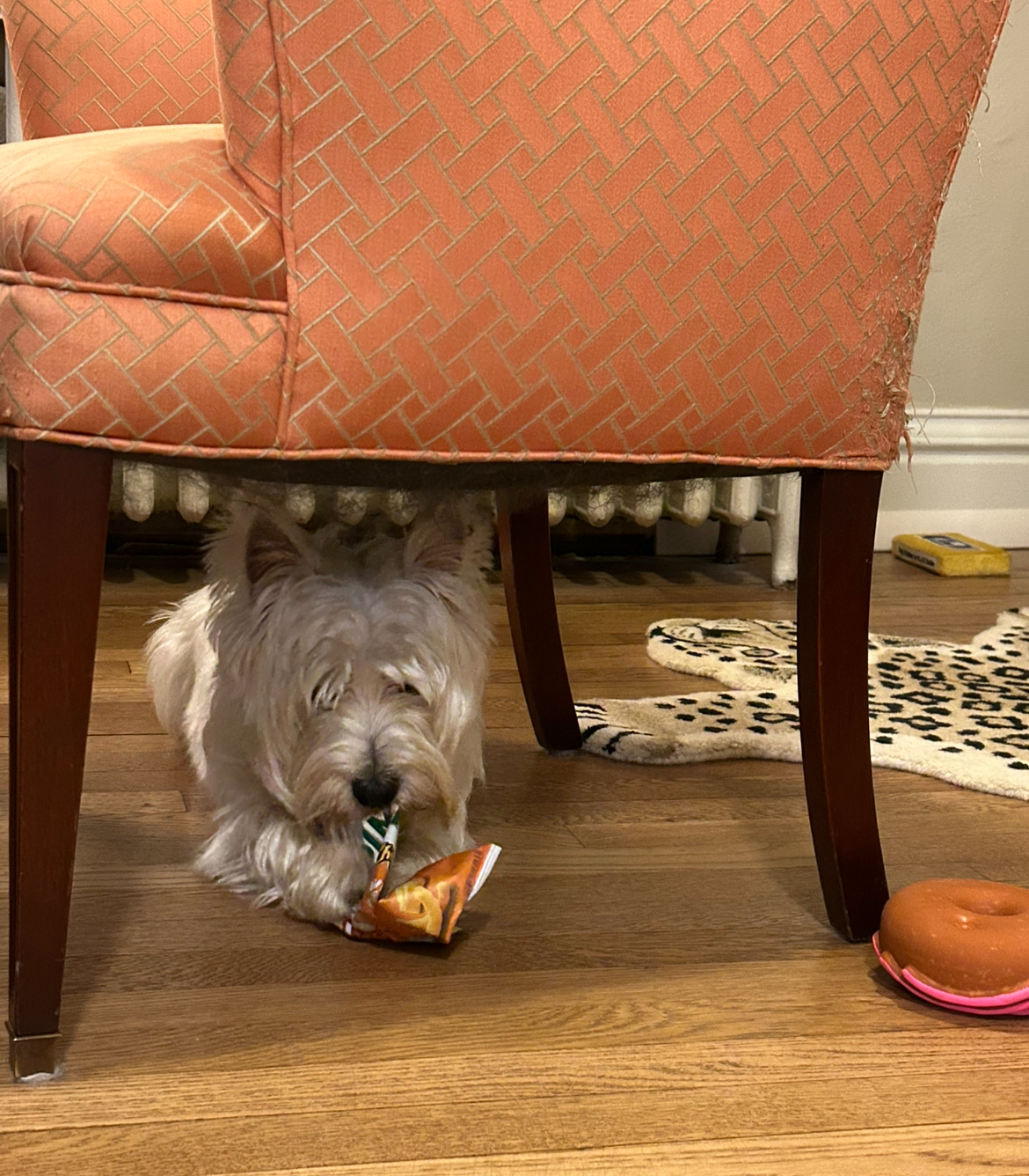 This is the face of a doggo who pulled something out of the trash and is now tasting white cheddar Cheeto dust for the first time. The good news is, they were the organic cheetos, so no red dye #40 or whatever.