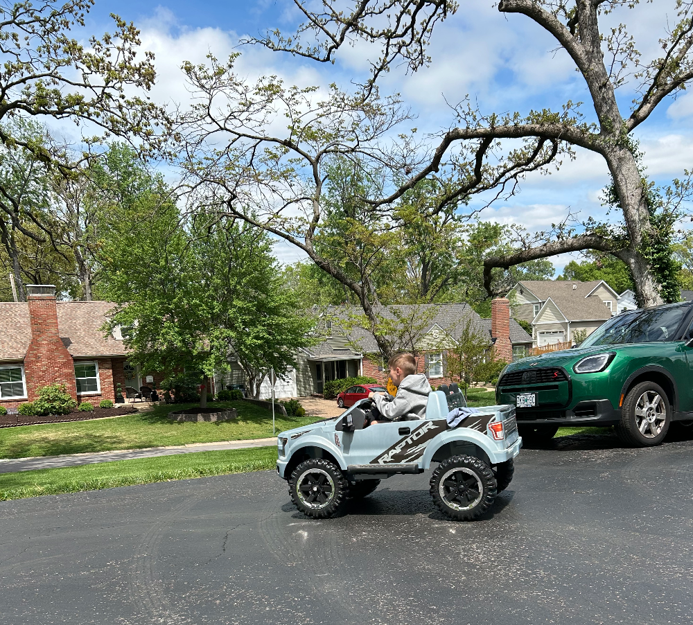 After that I “babysat” for the twins all Saturday afternoon. Their mother is at a conference in Orlando and their dad was working. It was a lovely day so I did some driveway sitting while they drove the raptor around…