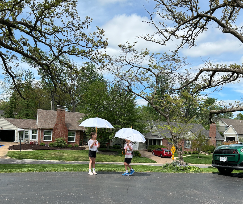(after we cleaned out the dead spiders inside which Lottie found)…and pretended to sing in the rain…