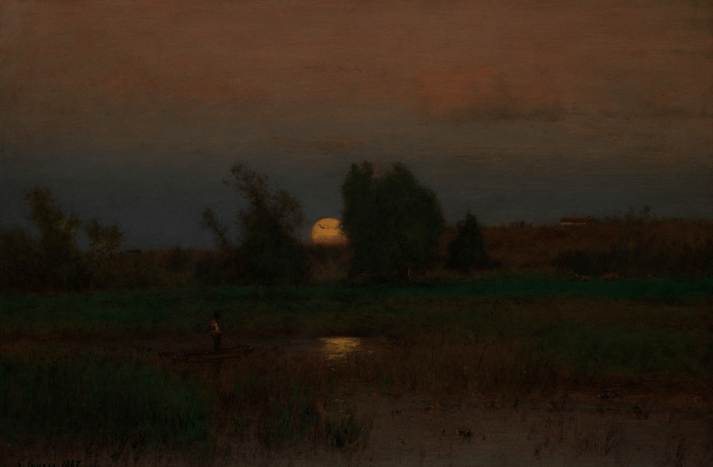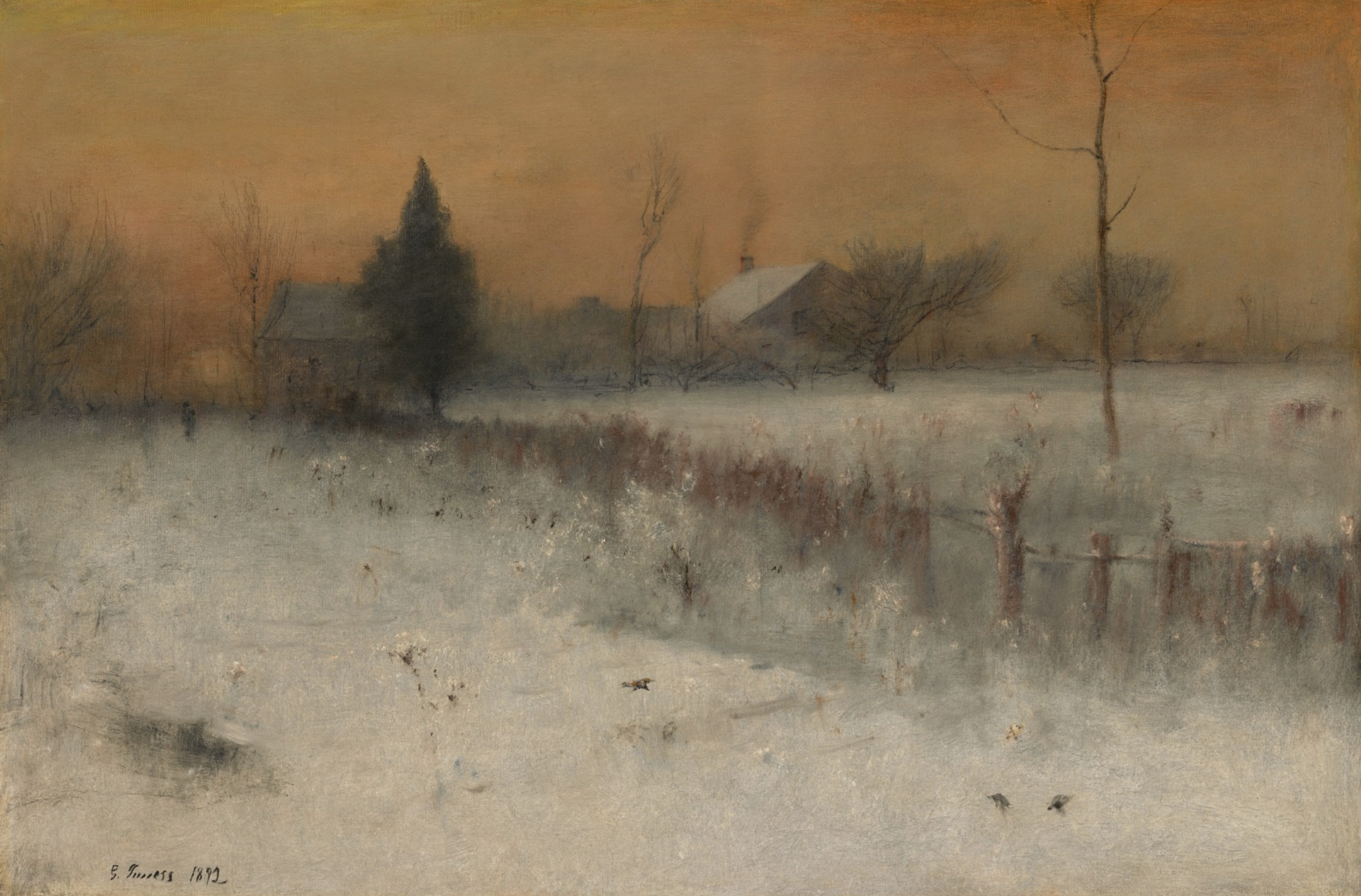 Inness died in 1894 at Bridge of Allan in Scotland. According to his son, he was viewing the sunset, when he threw up his hands into the air and exclaimed, “My God! oh, how beautiful!”, fell to the ground, and died minutes later. That’s a good way to go–for an artist or anyone, don’t you think?