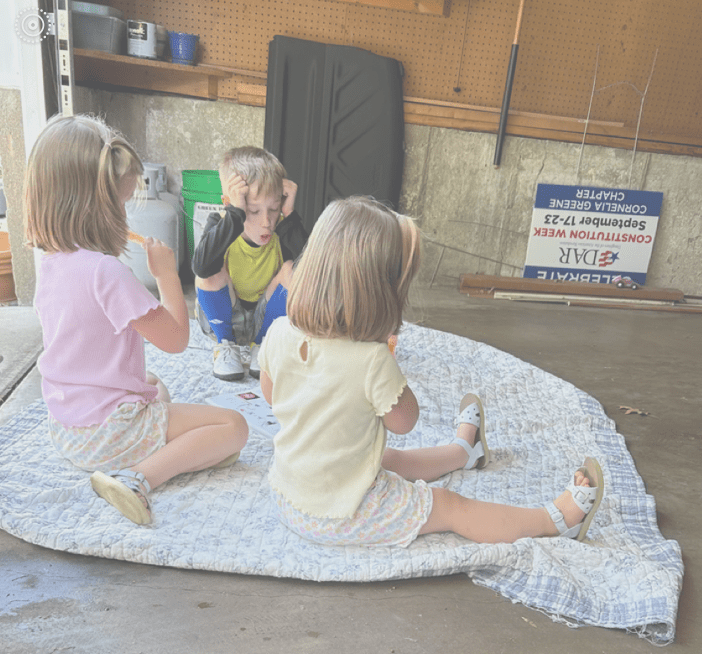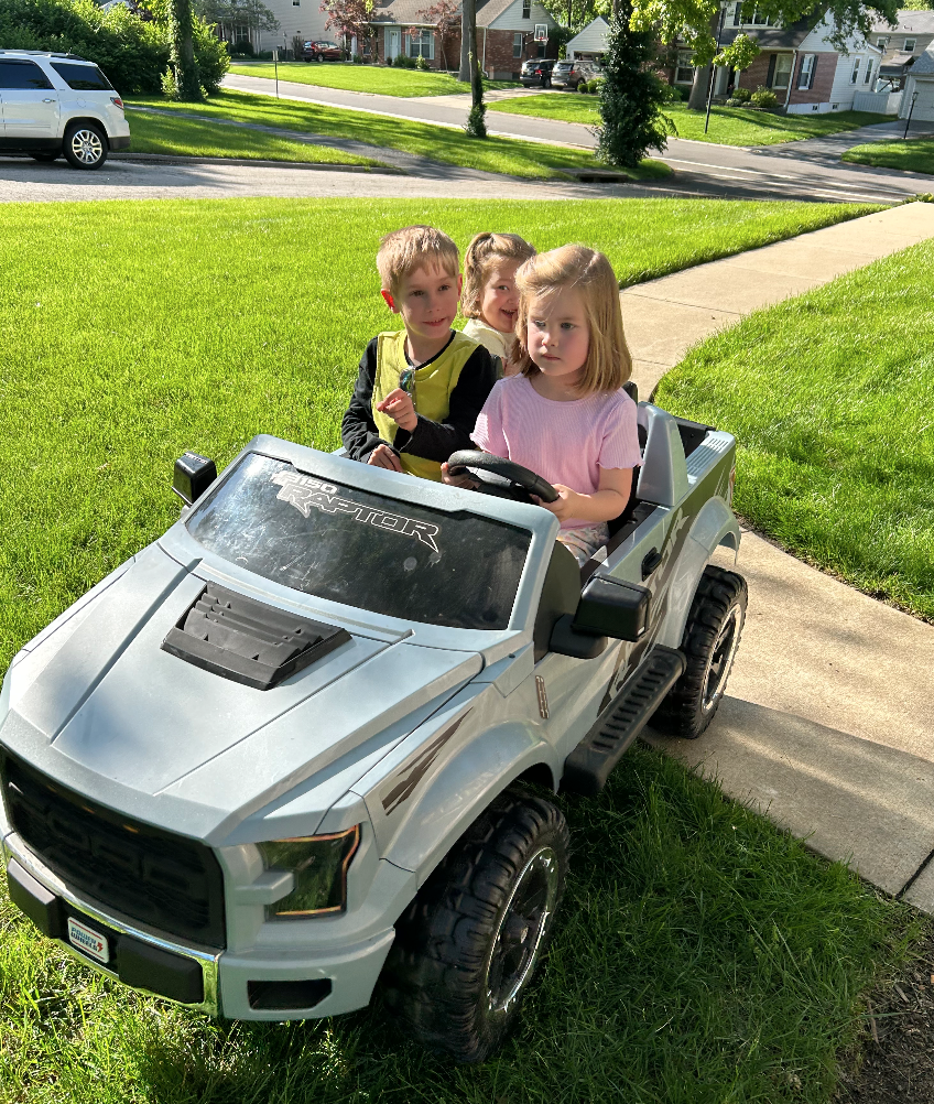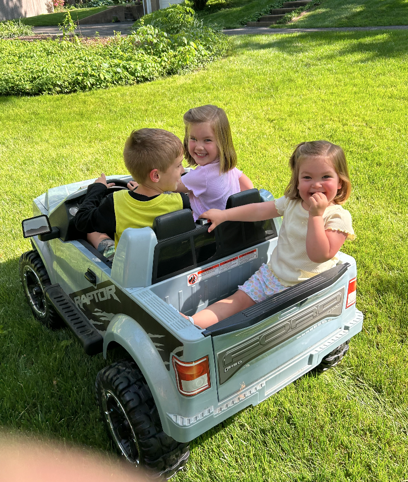 Later in the afternoon the boy came over with the bud (while Lottie was at dance class) and we sat on the driveway while the kiddos drove the “motorized truck” (as Katie calls it) around the yard in various seating combinations.