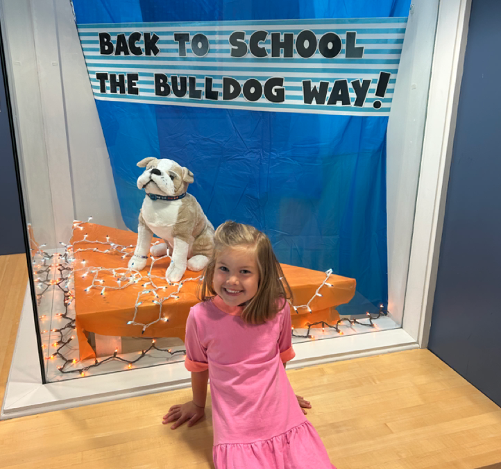 Katie starts kindergarten today! She met her teacher yesterday and wore her favorite dress which belonged to her aunt back in the day.