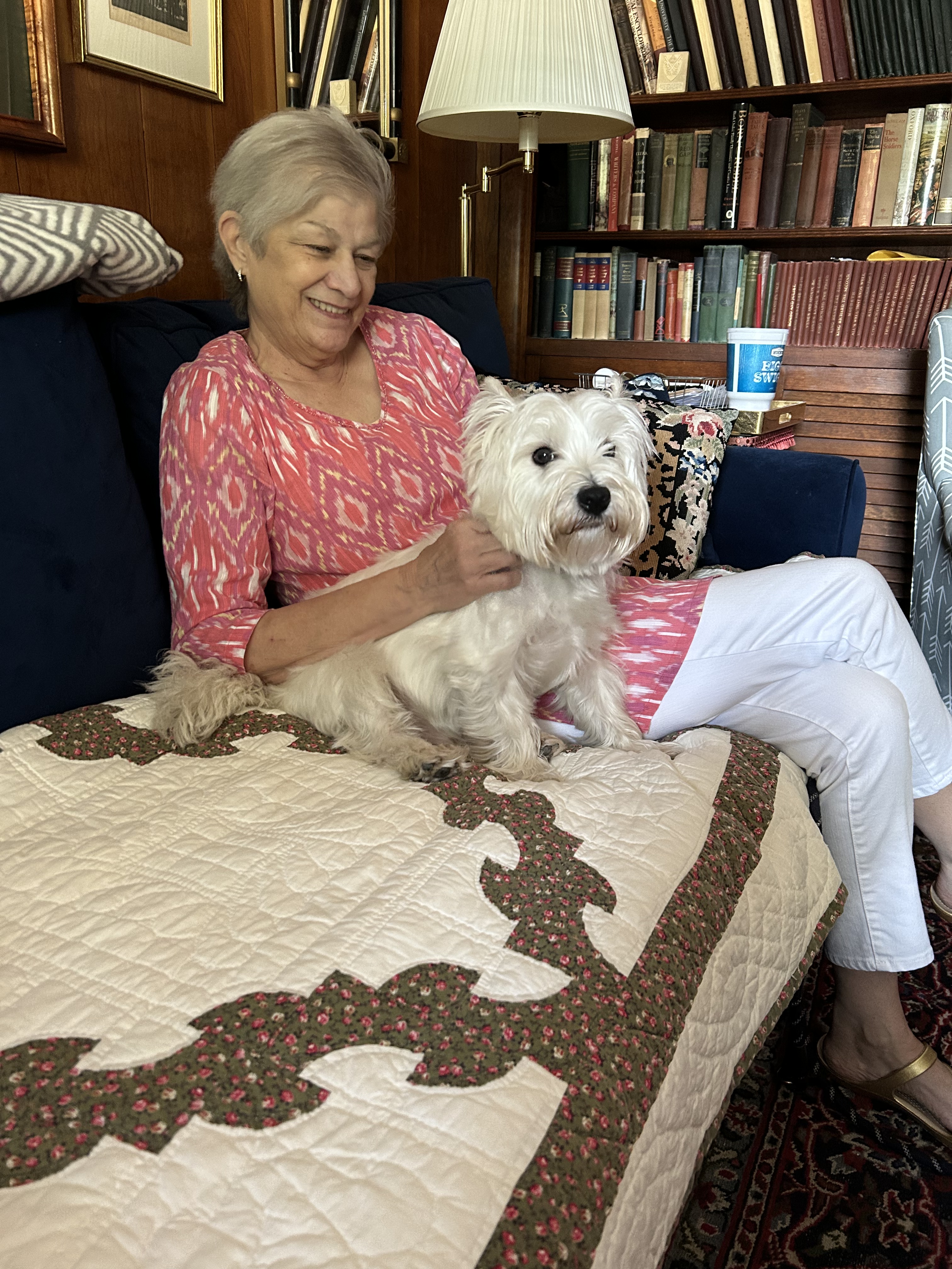 I spent a lot of time with my therapy dog Mr. Smith this weekend. Also daughter #1 and I went through more stuff. She also played DJ and we listened to old CDs, which we haven’t done in ages. (We bought an old LP at an estate sale on Saturday and that got us started.)