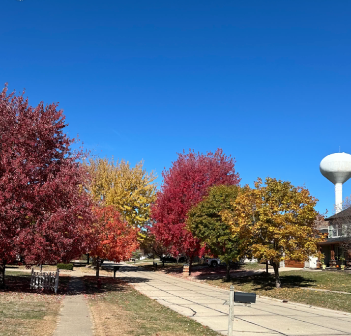 Daughter #2 sent this pic of her street in response to my post yesterday about not much color yet in my flyover neck of the woods. The prairie is ablaze!