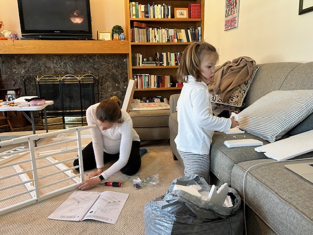 We had a productive time in Illinois earlier this week. I successfully painted the trim and vanity in Susie’s powder room without destroying anything and hopefully the wallpaper man will respond to her texts soon!