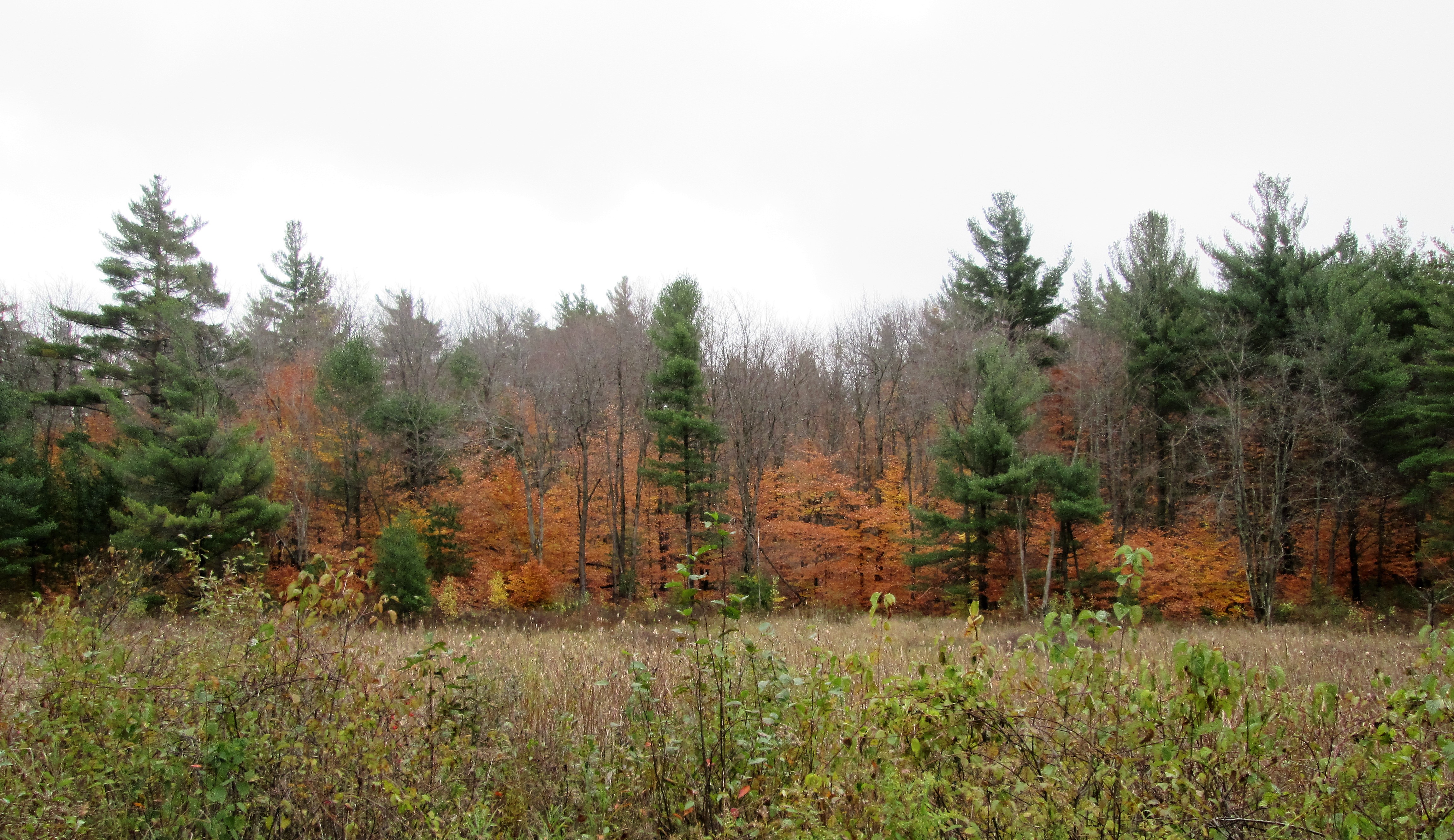 I like the way the taller trees are leafless but the smaller ones are still turning. It almost looks like the woods are on fire.
