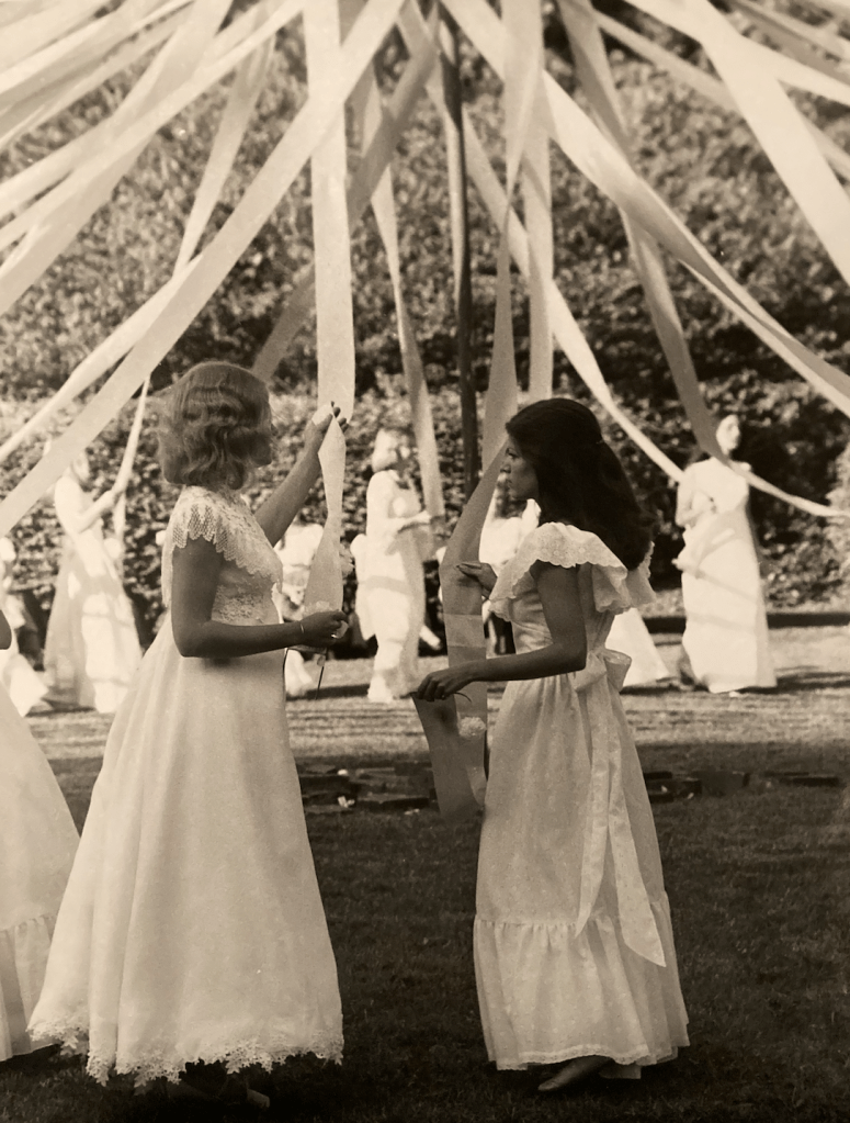 …when the senior class danced around the maypole, braiding the ribbons to the harmonious music of Vaughan Williams. (I look so serious–I must have been concentrating on not stepping on anyone’s dress.)