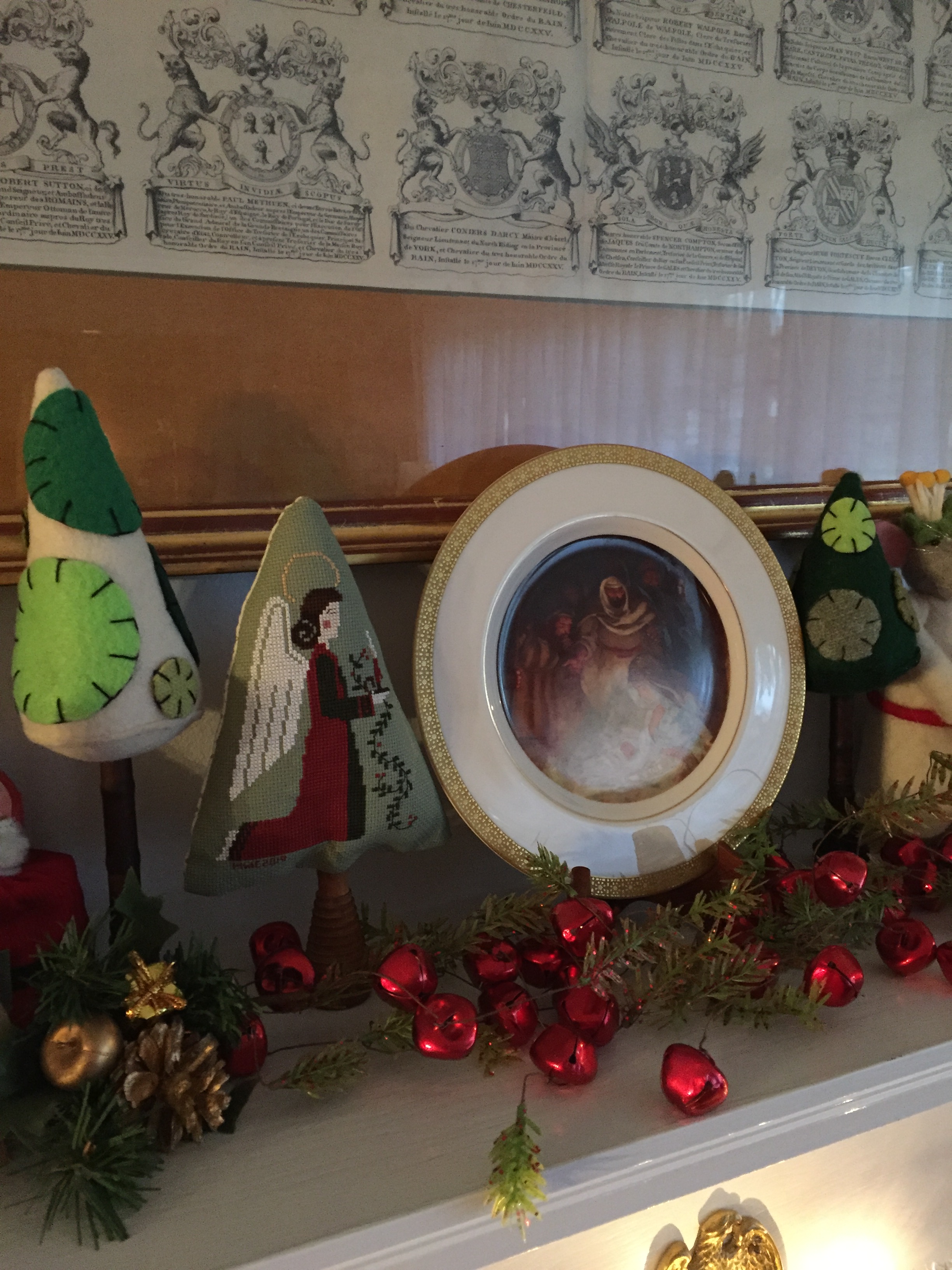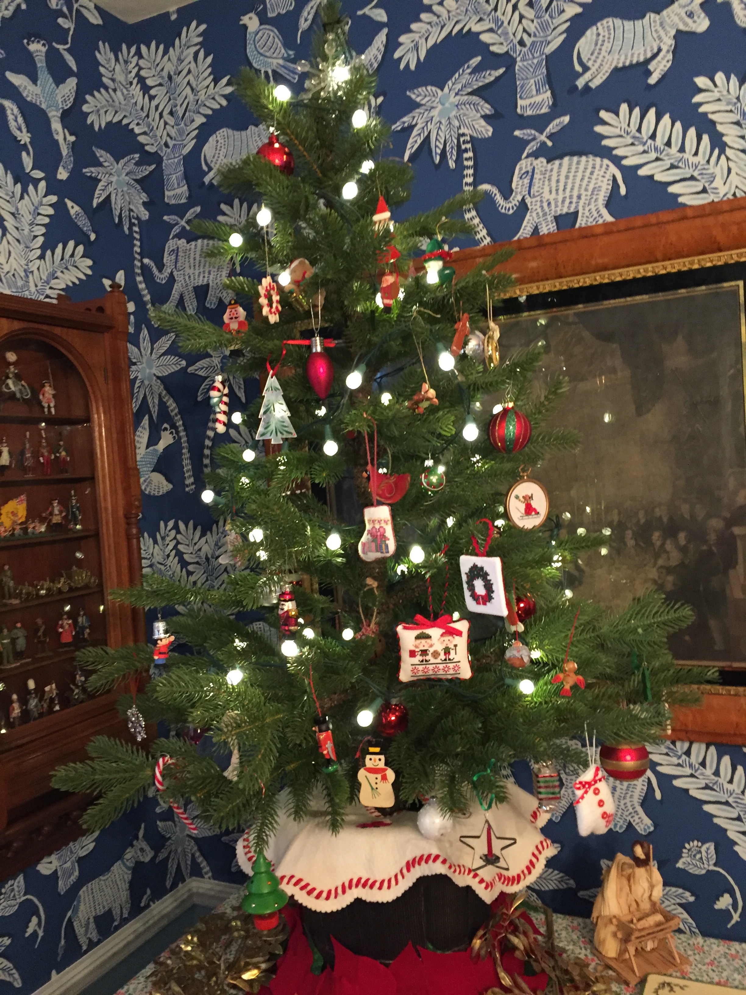 I started the process at my house alone on Saturday. It is a lot of work! First to put away and clean up all the Thanksgiving stuff; then to haul all the Christmas things up from the basement. But I managed to get the little tree put up in the dining room…