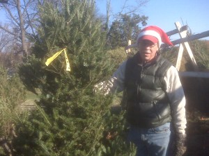 On Saturday we went to the Kirkwood Optimist’s tree lot to buy our big tree for the living room and a smaller one for the dining room. Mission accomplished! It was a beautiful day and, although cold, not prohibitively so. We found our tree with the help of a friendly Optimist in no time flat.
