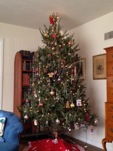 You can see that our tree seems to have something of a waist (!), but I’m sure the branches will come down and fill that in…right? Oh well, as Linus once famously said, “I never thought it was such a bad little tree. All it needs is a little love.” I’ll keep you posted.