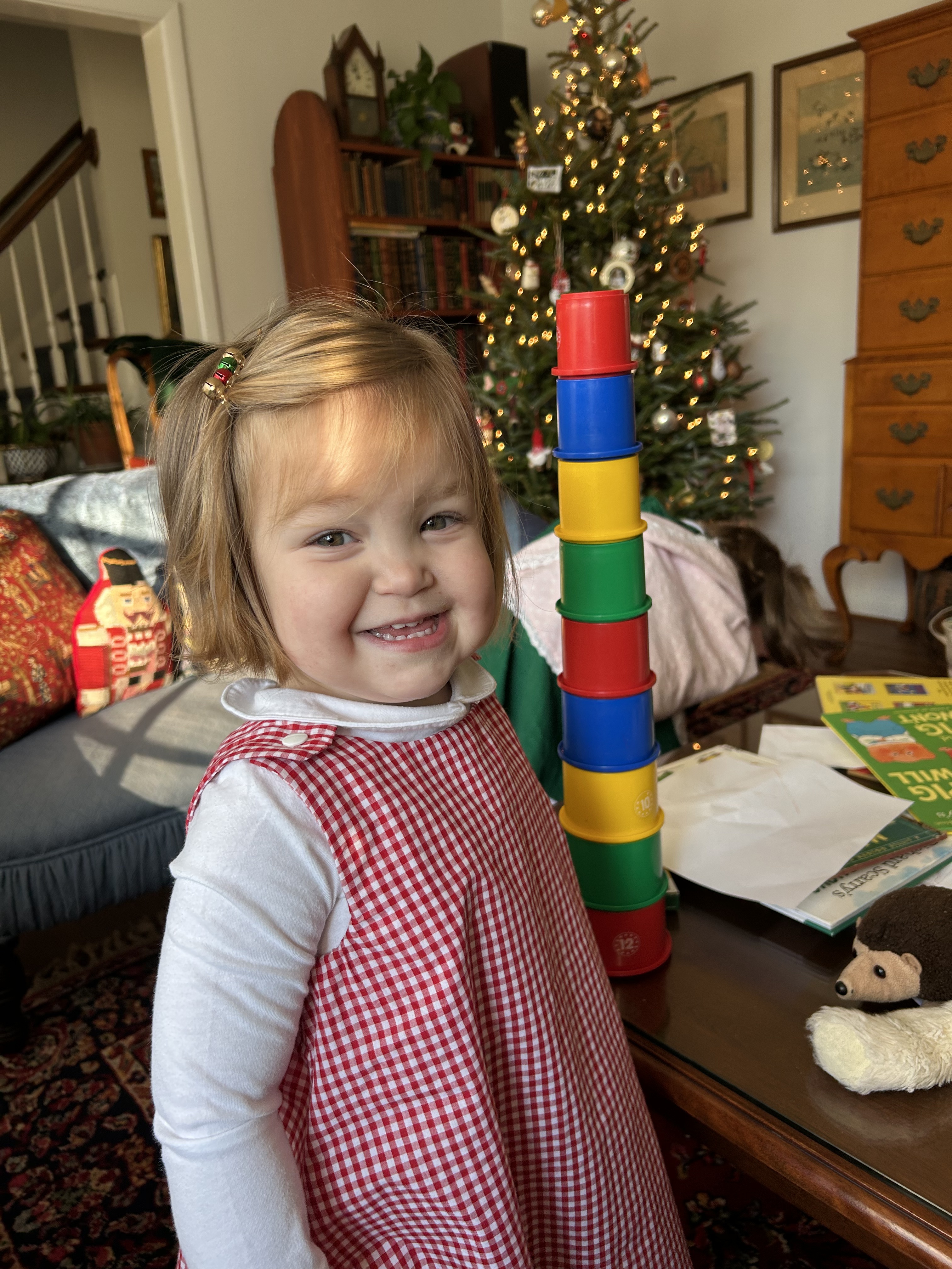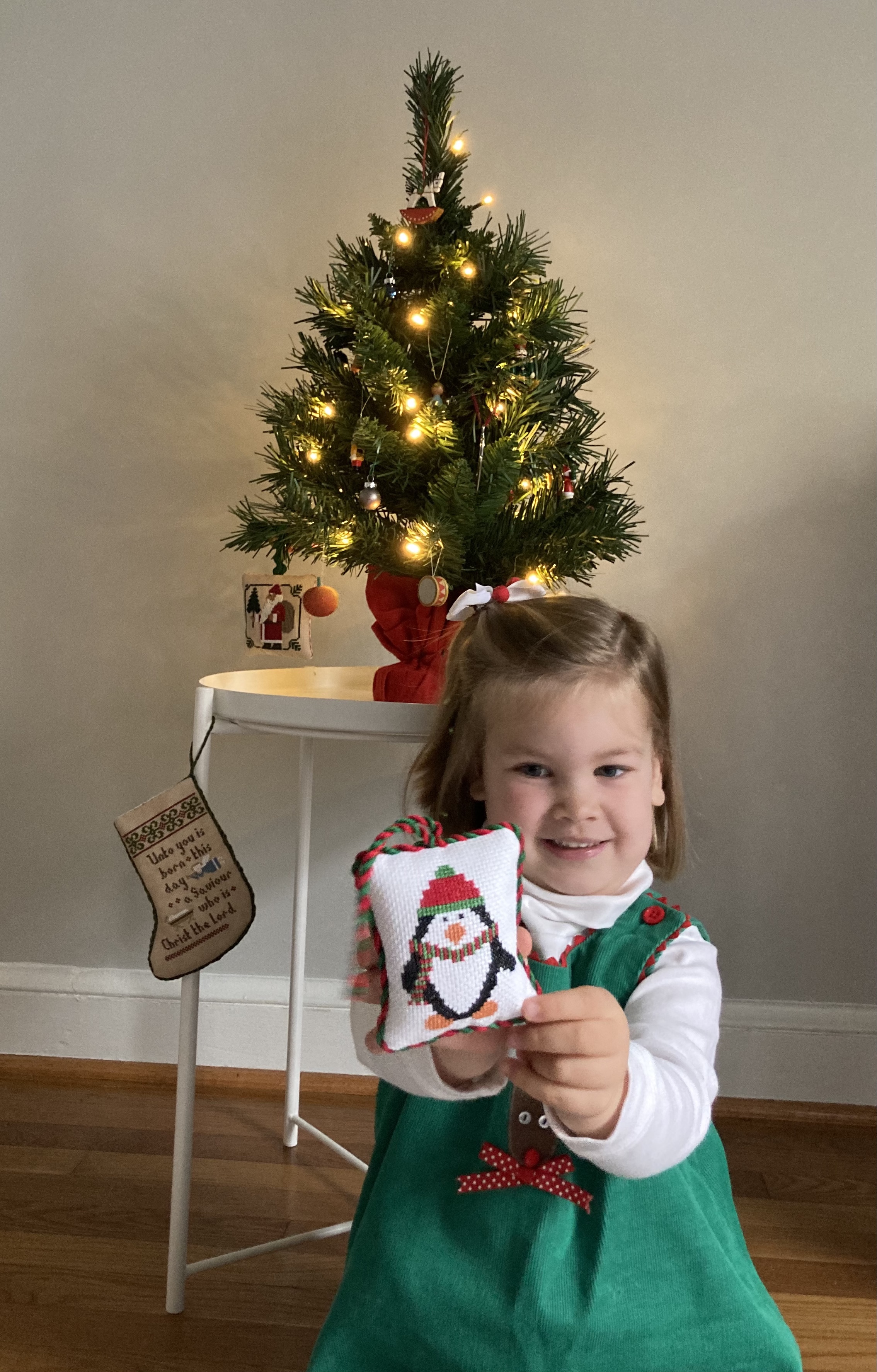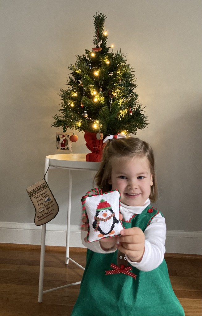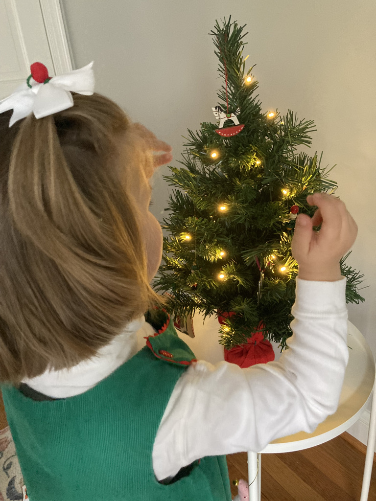 It should come as no surprise that I am enjoying the Christmas season with the girls. At 3.5 years old, Katie has been very invested in our decorations, Christmas stories, beloved movies, and other traditions. She makes everything more special, from buying an inexpensive wreath at the grocery store to unpacking generations-old ornaments. This year, she even picked out a few gifts and helped me pen the accompanying cards. (We discussed that, because it’s the thought that counts, it helps to write a thoughtful message about what you chose.)