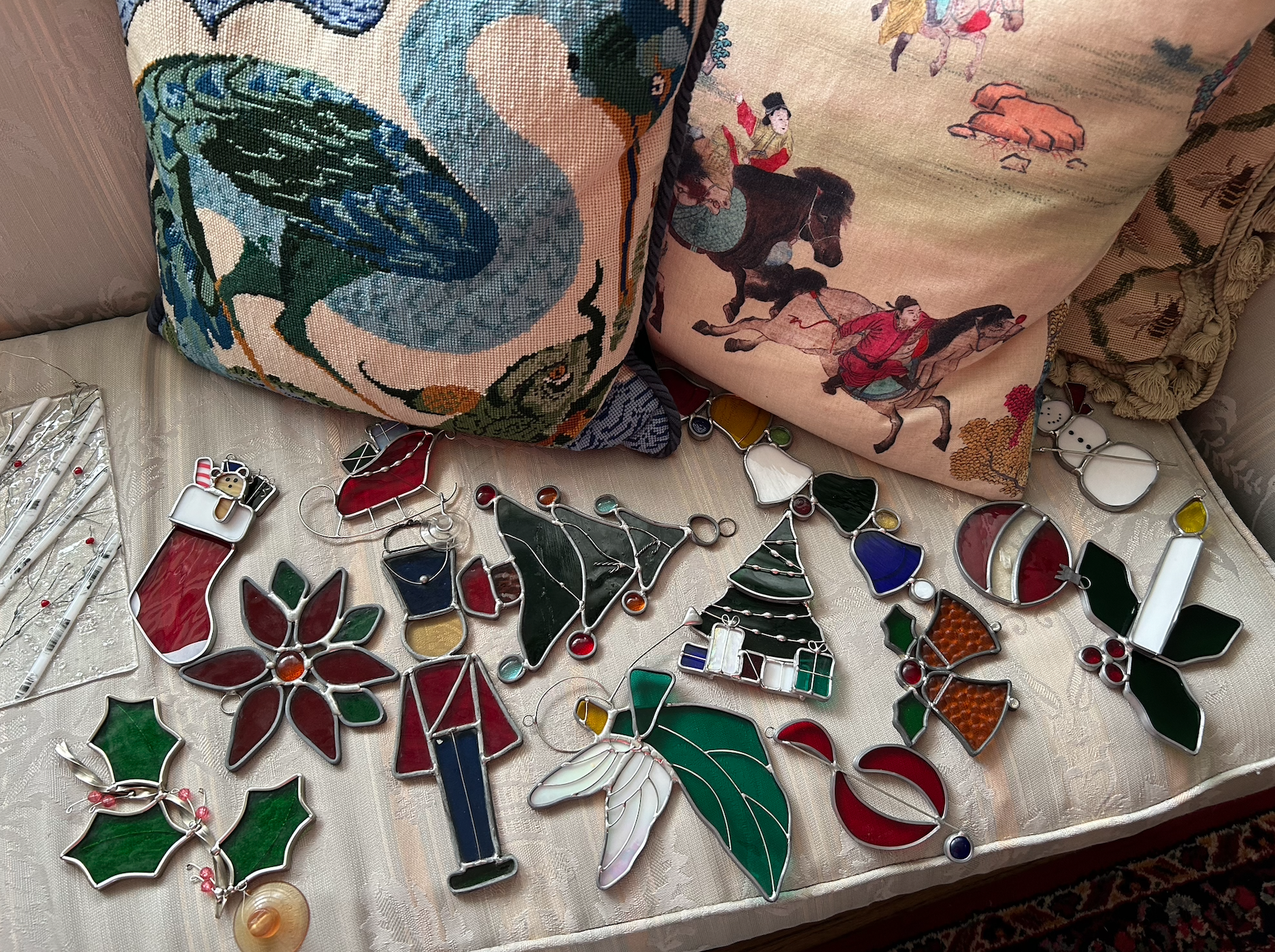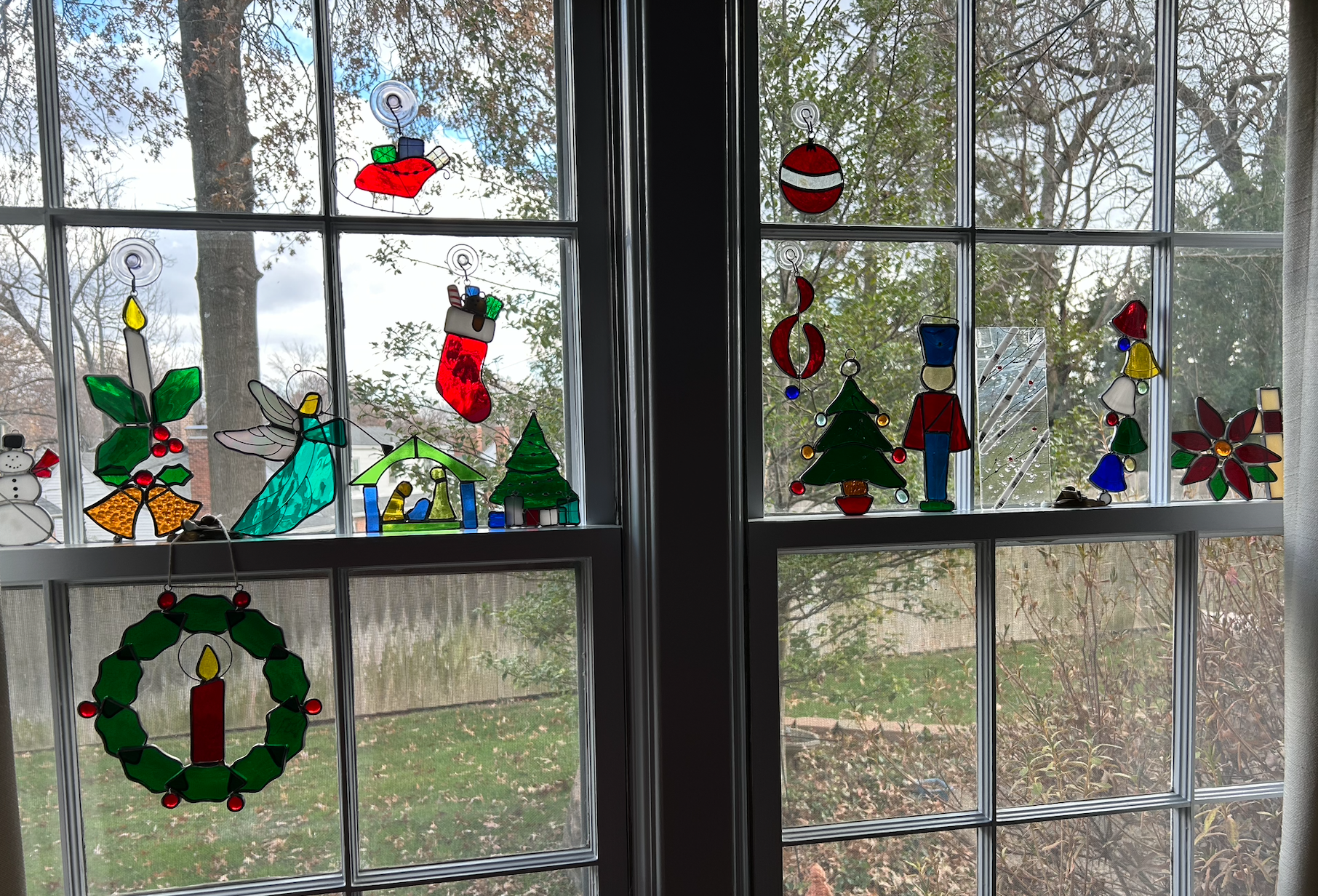 In other news, the bud, when he was over on Tuesday afternoon, helped me unwrap all my Christmas stained glass…