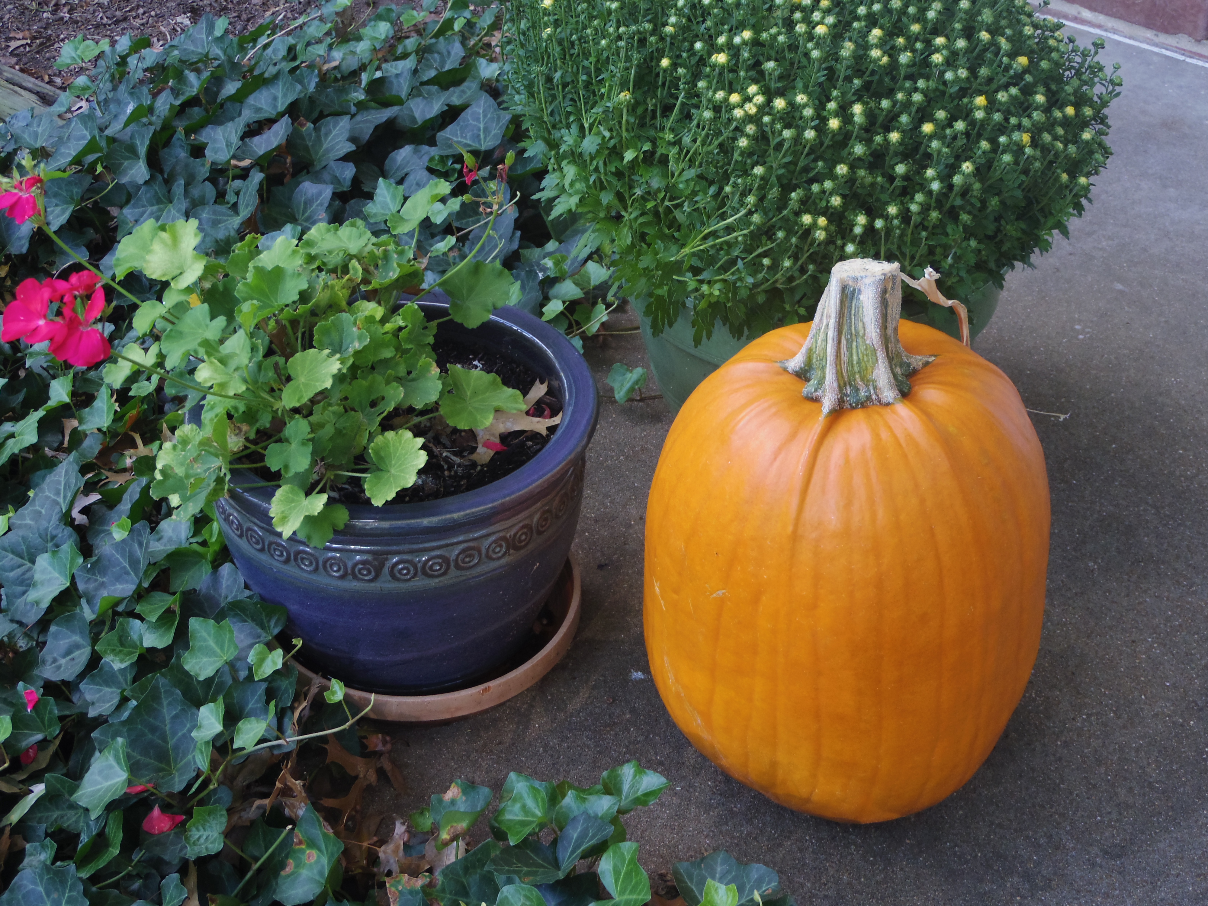 Several people have sheepishly asked me about my own little pumpkin patch, which they notice I haven’t mentioned in quite awhile. Well, my pumpkin patch, which at first seemed to thrive, shriveled up in August and is no more. Heavy sigh. The OM said it didn’t get enough sun. Daughter #1 surmised that it was because I planted the pumpkins in the Indian Burial Ground corner of our yard where nothing has ever grown. Whatever. I refuse to get all upset and weepy about it. The pumpkin patch at the Methodist Church has a ton of pumpkins and so I bought one there on Saturday.