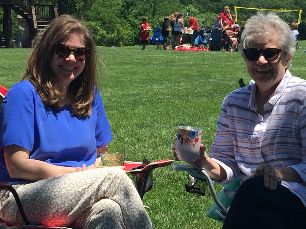 Ah, three-day weekends are nice. Everyone is more relaxed. We are on the summer schedule at church now, which means that although there are still two morning services, there is no children’s chapel at the 11:00 o’clock. I missed that memo somehow and we brought the twins to the 11 o’clock. The wee bud teared up at the offertory hymn at the prospect of staying with us through the whole service, so Pappy took him out to the fellowship hall to hang out. (He was not the only parent/grandparent to do so.) But Lottie stayed with me and did a very good job of curbing her depravity and listening/keeping quiet during the 40-minute Presbyterian sermon. She went up with me to get communion (although she did not take communion.) She had a lot of questions. Is that blood? I said I’d explain later.