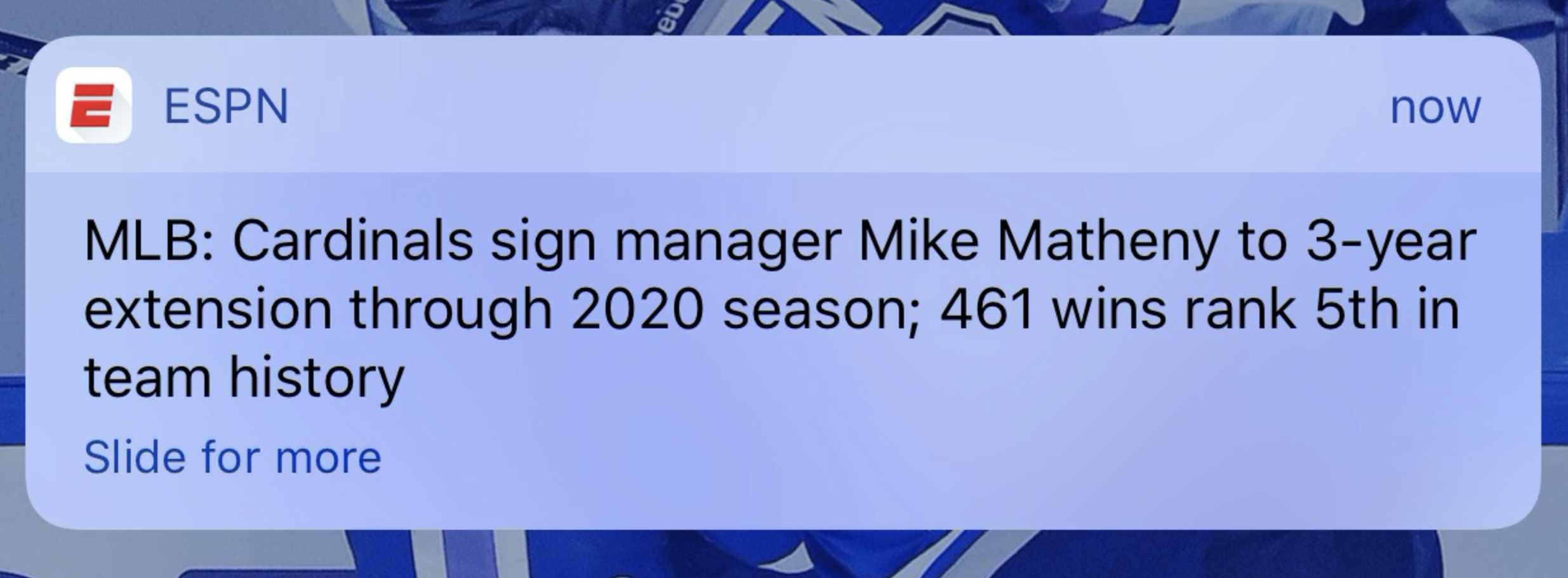 Matheny leaves the Cardinals after becoming the only manager to lead his team to four playoff appearances in his first four seasons; and he has never had a losing season, even this one in which the team was 47-46 before Sunday’s game. He blames no one but himself for the team’s uninspiring 2018 season. He says he’s anxious “to see where my life is being guided and see what doors are open and what (God) is going to do.”