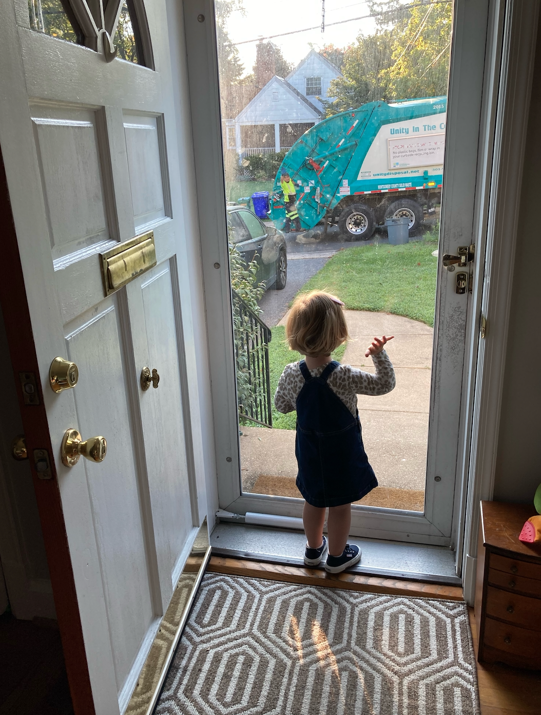 Bunker is, of course, goofing around wearing someone else’s hat. Catherine thinks it’s hilarious. Who knows what the old lady thinks–but she was probably amused by Bunker too.