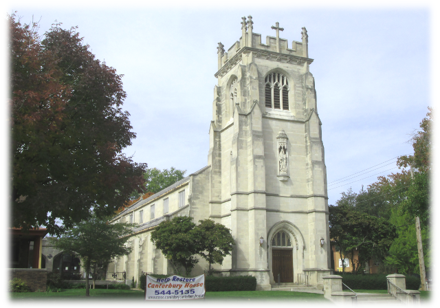 The current Cathedral was built between 1912 and 1913 to replace an older building located at Third and Adams Streets to house its congregation which was founded in 1835. Its early members included, Ninian W. Edwards, son of Illinois’ first governor and husband of one of Mary Todd Lincoln’s sisters. Four Todd sisters attended the early church and were married there, including Frances Todd Wallace, Ann Todd Smith and Elizabeth Todd. Mary Todd was married to Abraham Lincoln by the first Rector, Charles Dresser. A marriage registery in which the marriage was recorded is preserved in the Canterbury House. (I had forgotten that the Todds were Episcopalians.)