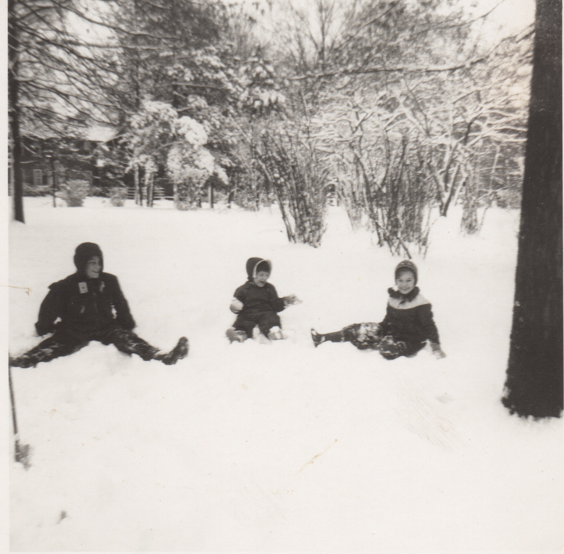 The dual personalities frolicking in the snow with their older brother circa 1964