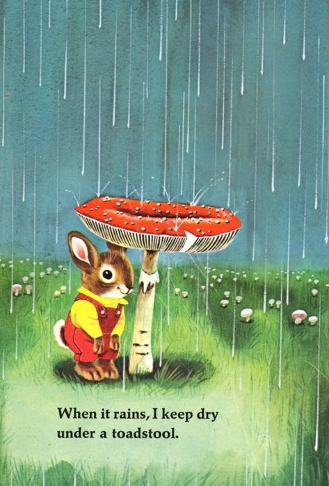 I was talking to daughter #1 yesterday–I was at work and she was walking down Columbus Avenue on her way to work in New York City. It started to rain and she had to run. There were no toadstools to wait under.