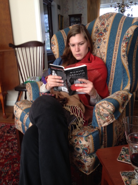 They sure had everyone in a tizzy of expectation. Church was even called off yesterday! (The rector is in the holy land–is this what happens when the cat’s away?) In fact, most churches in the area canceled all services because of the expected 10″ of snow/sleet. Unheard of in the “olden” days! Can’t say that I wasn’t pleased to be able to stay in bed and read Olivier and Parrot by Peter Carey.