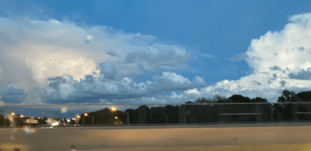 This was the view out the window of our Uber as we drove home from the STL airport Sunday night–amazing cloud formations which were in fact much cooler and awe-inspiring than could be captured on my iPhone in a speeding car.